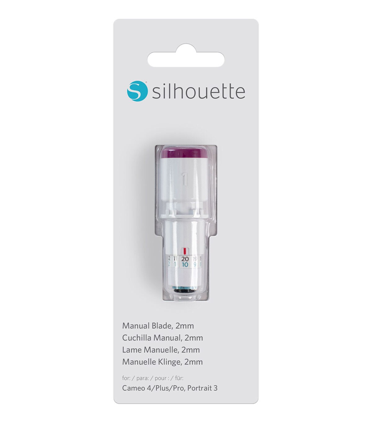 Silhouette blades provide the ability to cut various standard materials with a Silhouette precision cutting machine. This includes paper, cardstock, vinyl, vellum, heat transfer material, sticker sheets, and select specialty media. This blade can cut materials with thicknesses up to 2 mm and fits directly into the Portrait 3 and Cameo 4 series machines without needing an adapter.