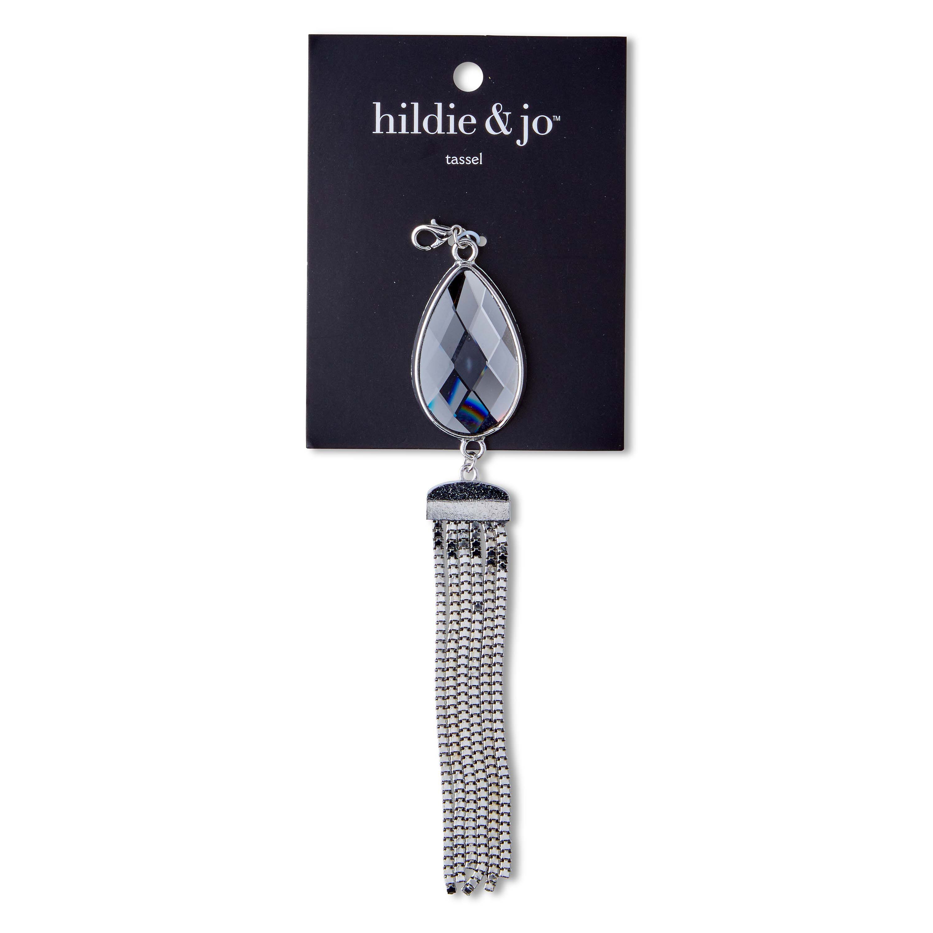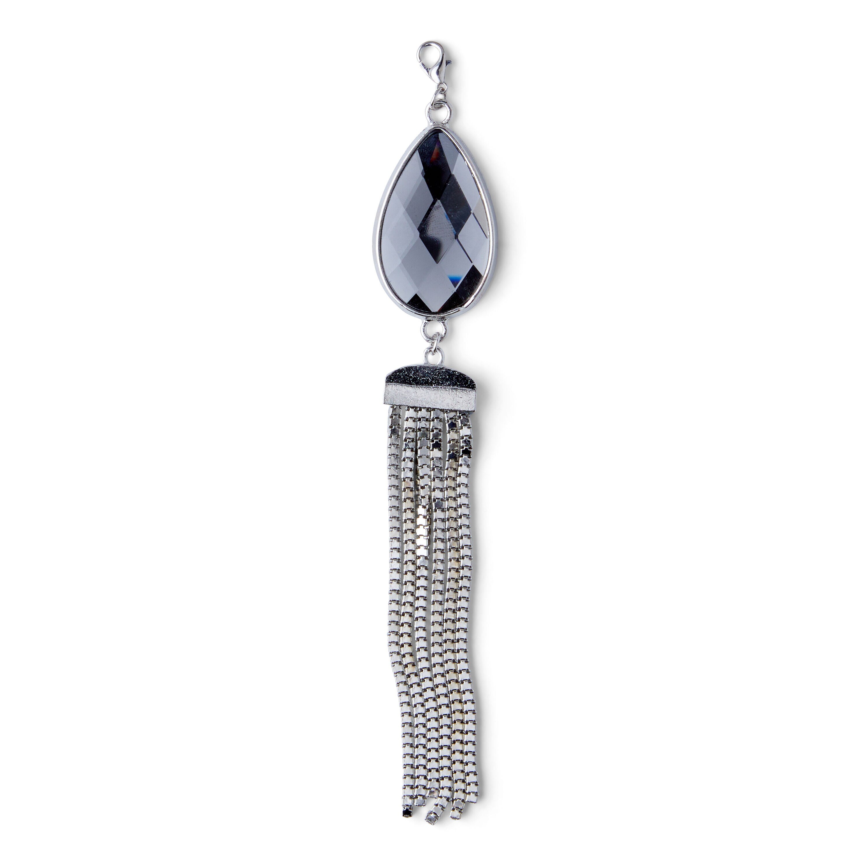 Embellish your DIY projects with the lovely hildie & jo Effortless Charm Silver Tassel-Teardrop Crystal. This tassel is made of silver chain and features a teardrop crystal for visual flair. For easy attachment, it comes with a lobster clasp. You can use this tassel to complete your necklace, keychain, craft projects and more.