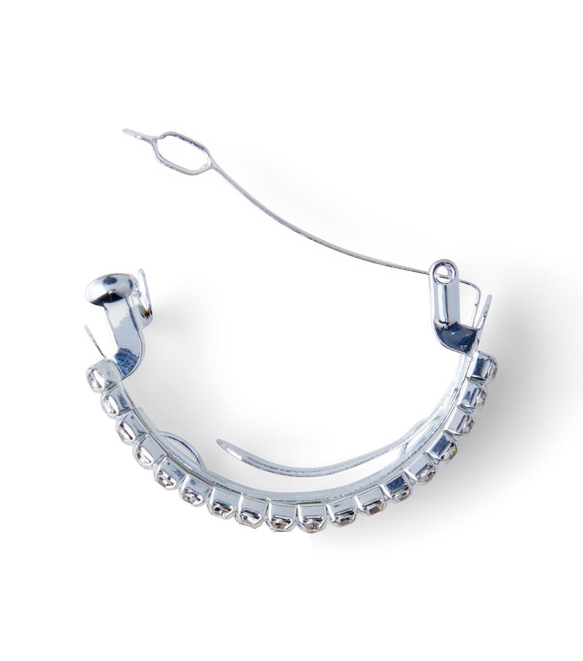 Complete your look with this stunning hildie & jo Silver Barrette-Clear Round Crystals. In an oblong shape with curved ends, this barrette is covered in clear round crystals. This wonderful silver barrette will be a great addition to your jewelry making stash. You can clip it into an updo to lend an elegant statement.