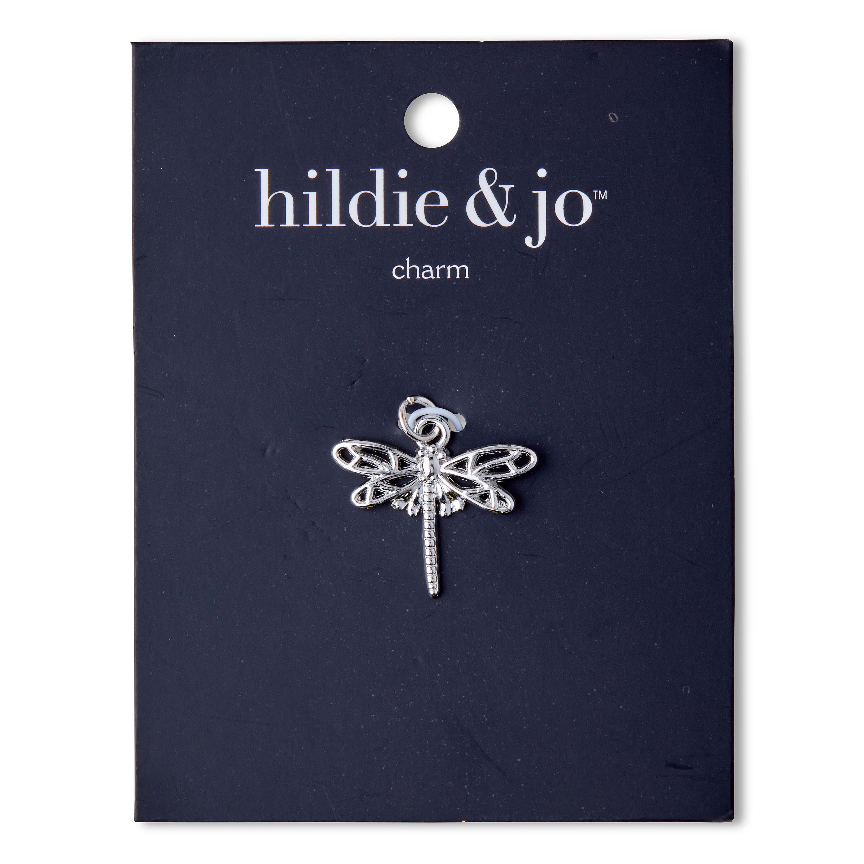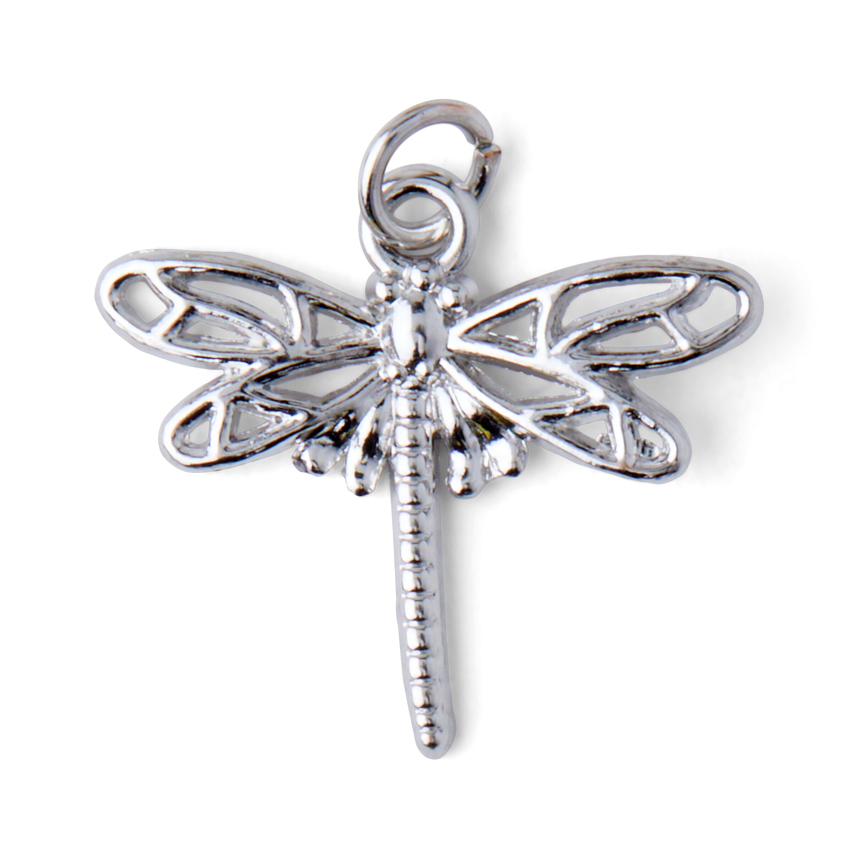 Personalize a DIY craft project using this hildie & jo Symbolize Dragonfly Silver Charm. It's crafted in the shape of a dragonfly, with cutout details on the wings and a pattern on the tail. Use it to create fun bracelets, necklaces and more. The pack contains one dragonfly charm made of zinc alloy and iron.