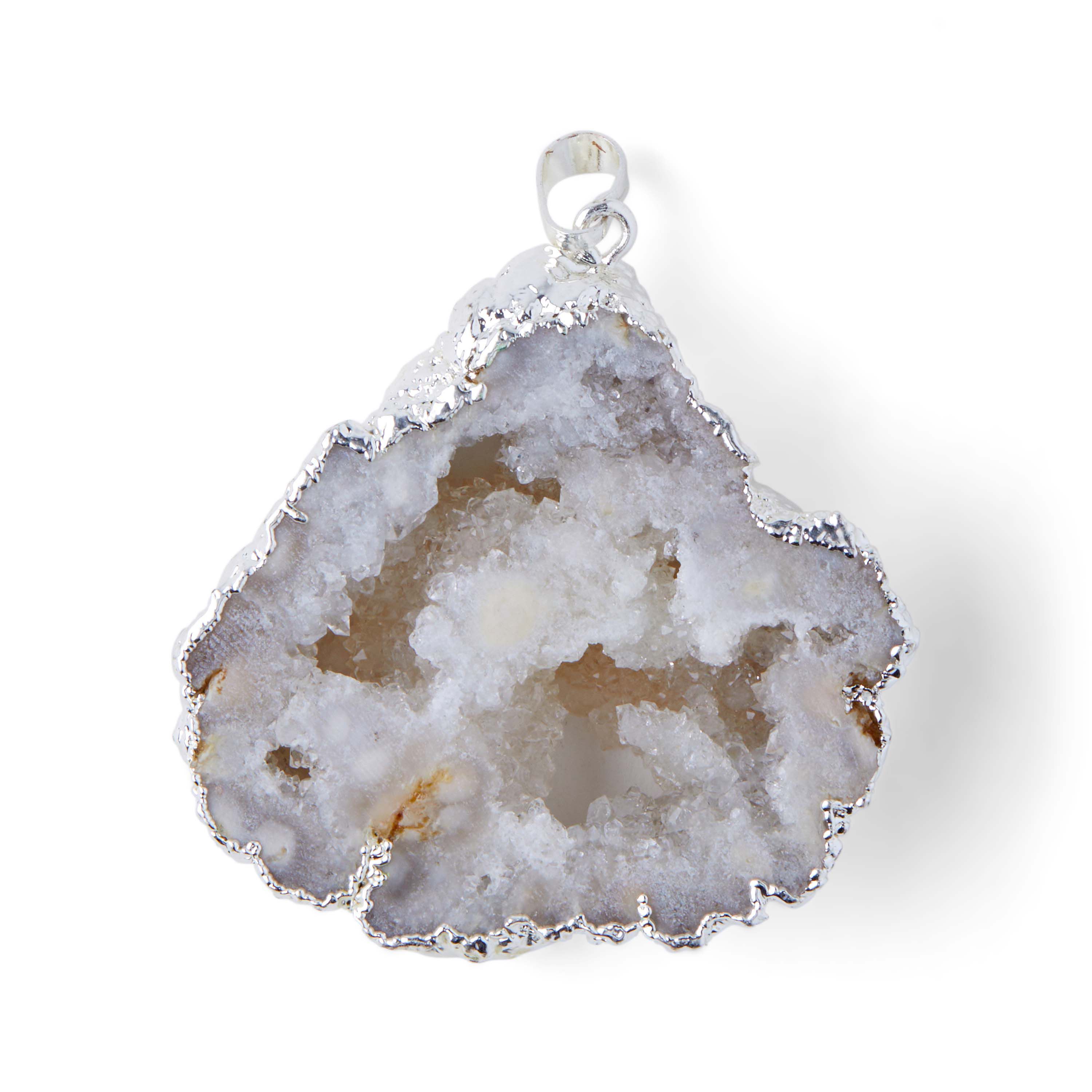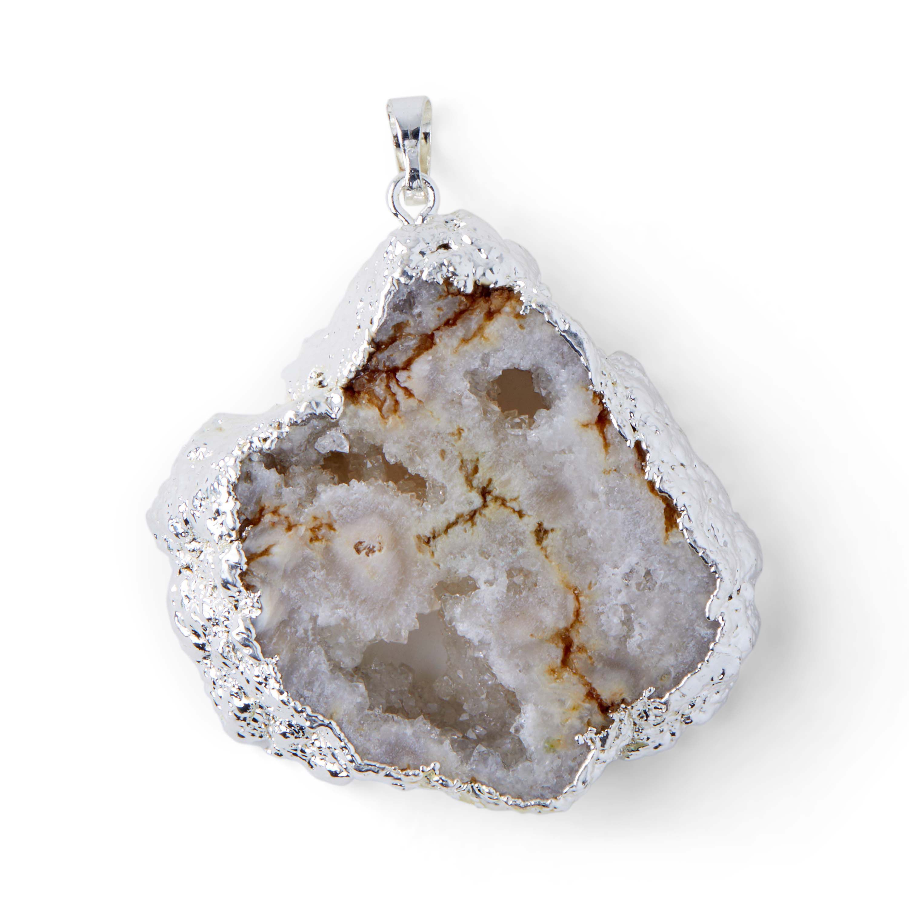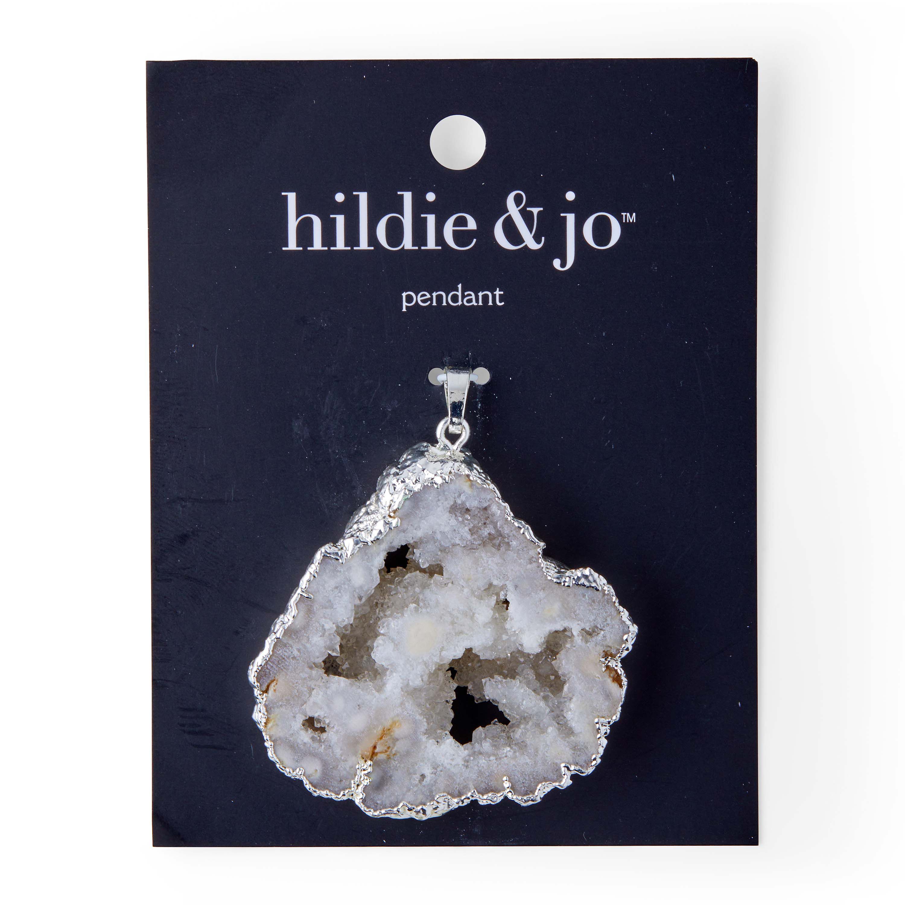 Accessorize a special occasion look with the hildie & jo Effortless Charm Silver Pendant-Druzy White. A gold colored paint rounds the edges of this druzy white stone for visual appeal. Add this pendant to a gold finished chain to create a stunning DIY necklace. Team it with a pair of earrings to complete your look.