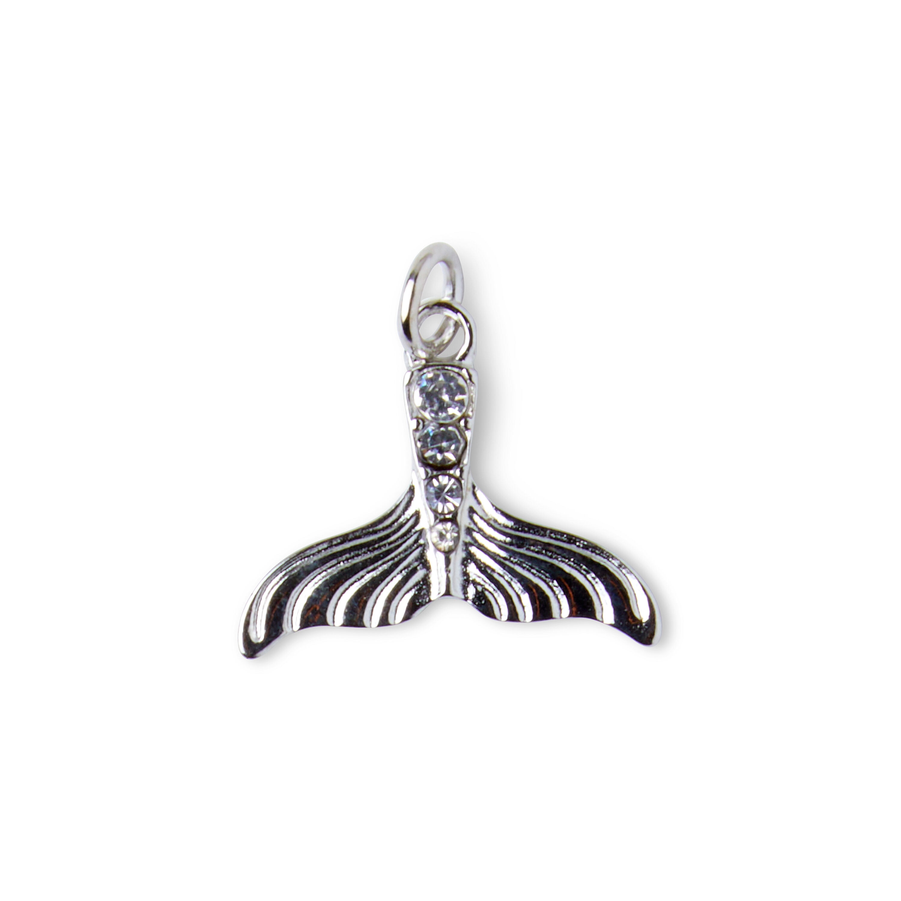 Adorn your necklace with this lovely hildie & jo pendant. The pendant is in the shape of a fishtail. The top of the fishtail has four clear crystals in cascading sizes. The bottom is smooth silver with ridges. Add it to a necklace for an eye-catching effect.