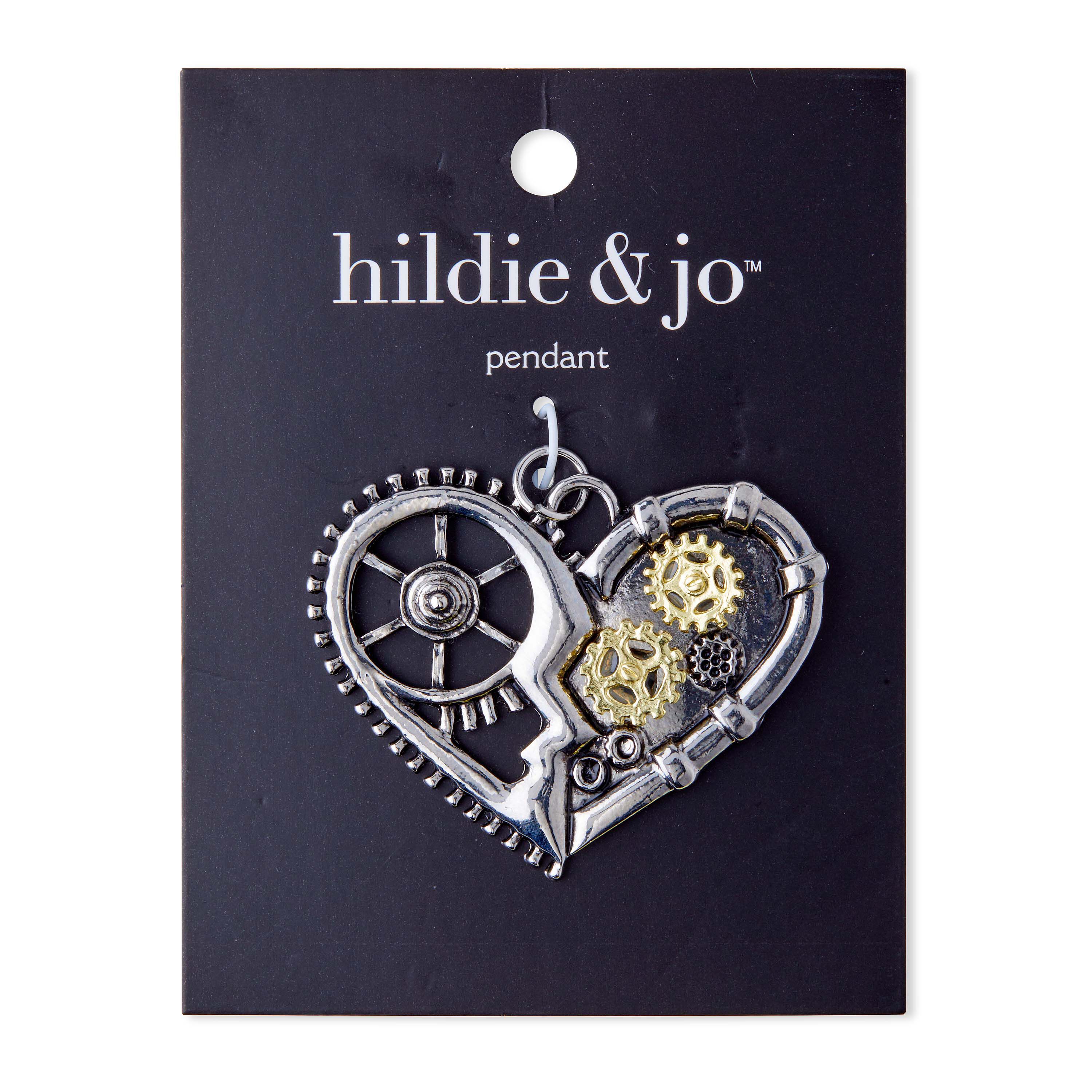 Wear this hildie & jo Gear Heart Pendant to flaunt an interesting look. The body of this heart pendant is in designed in smooth silver. The left half of the heart is open with cut outs of a gear, including a ribbed edge, whereas the right of the heart has smooth gold and silver gears. Edge detailing completes this unique design. Simply add it to a necklace and you are ready to go.