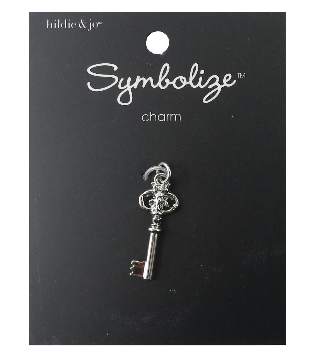 Create a unique look with this hildie & jo Symbolize Key Silver Charm. It features an old fashioned key in smooth silver, with scroll patterns for added charm. You can add to a bracelet, necklace or other jewelry project. This pack includes one key charm made of zinc alloy and iron.