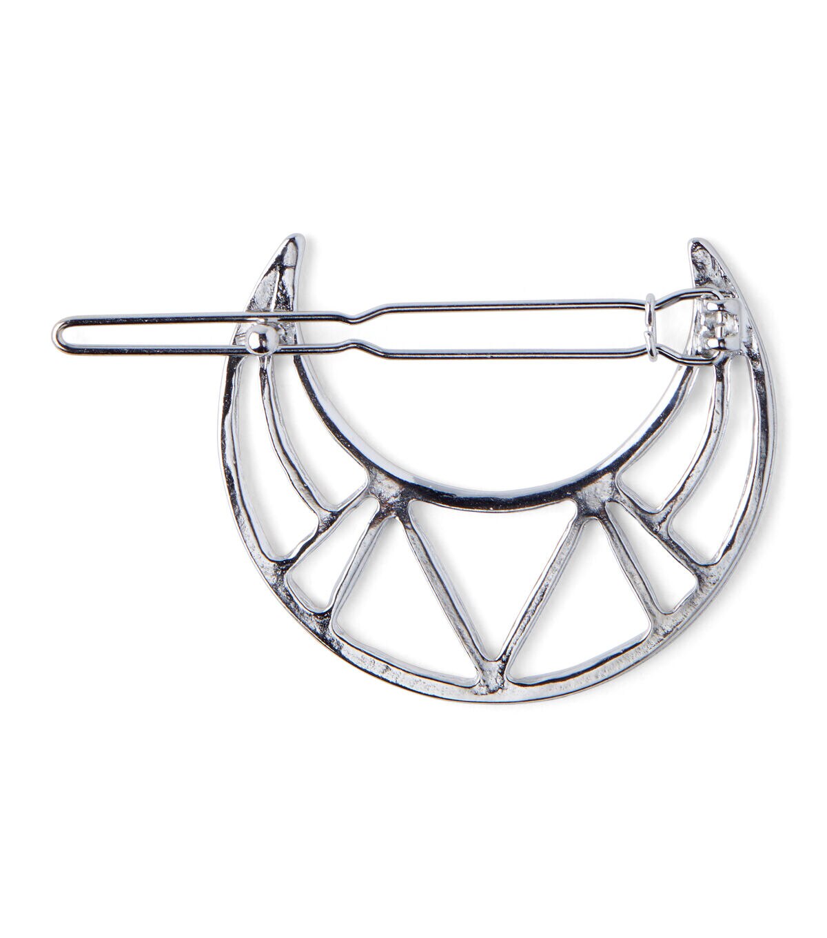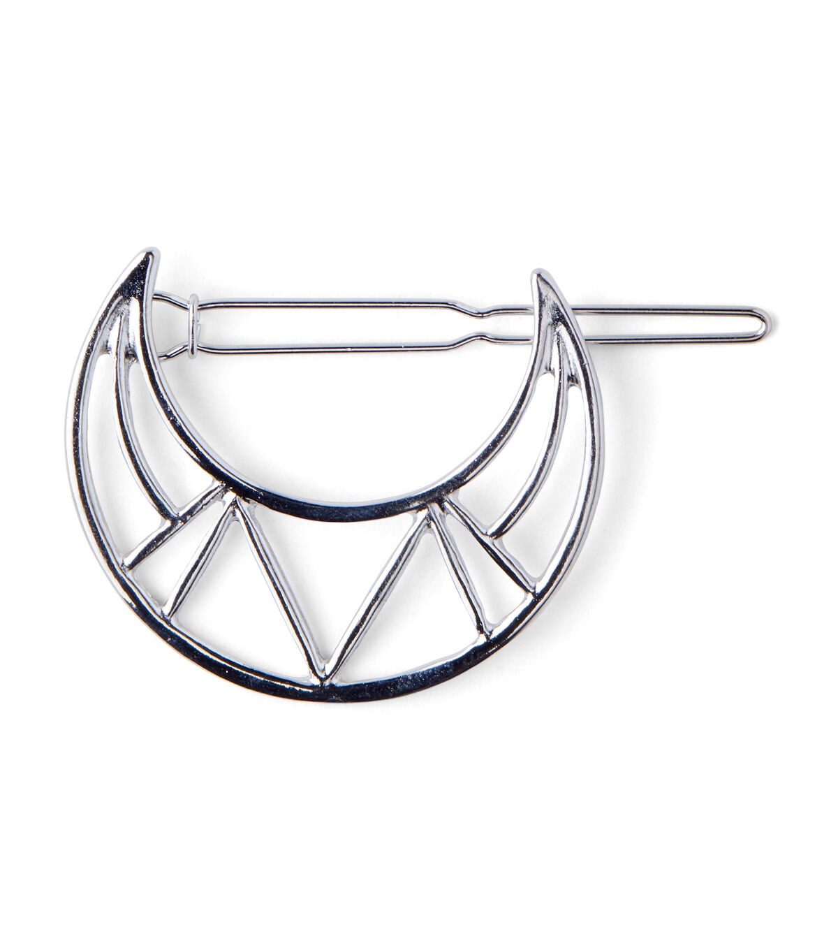 Glamorize your simple look with charming accessories like the hildie & jo Moon Silver Barrette. In silver, the barrette is the shape of a moon with an open line design. Wear it with any trendy outfit or formal attire to create a striking impression.