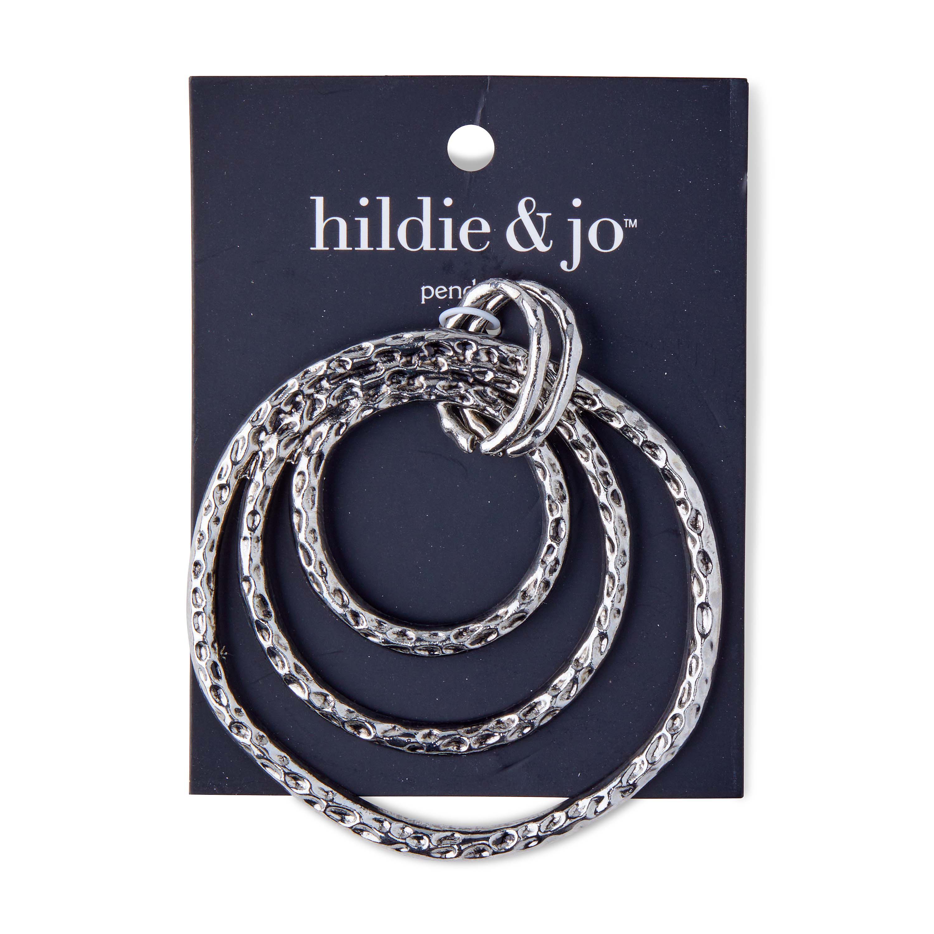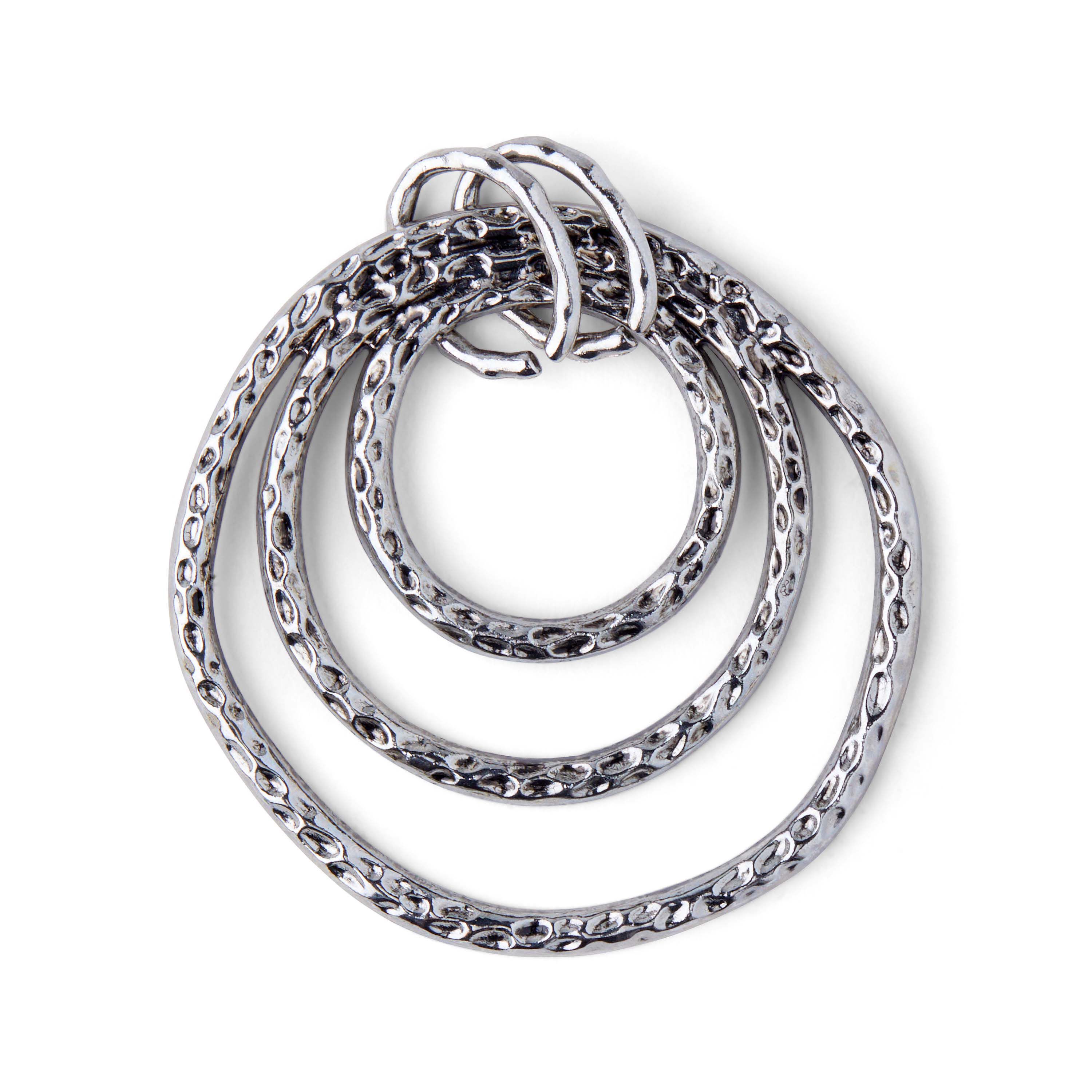 Adorn your necklace with this lovely hildie & jo Open Circles Pendant-Silver. The pendant consists of three silver open circles in varying sizes that are set within each other. These circles have a black dot design on it. They are linked together at the top with two small silver rings. Add it to a chain for an eye-catching effect.