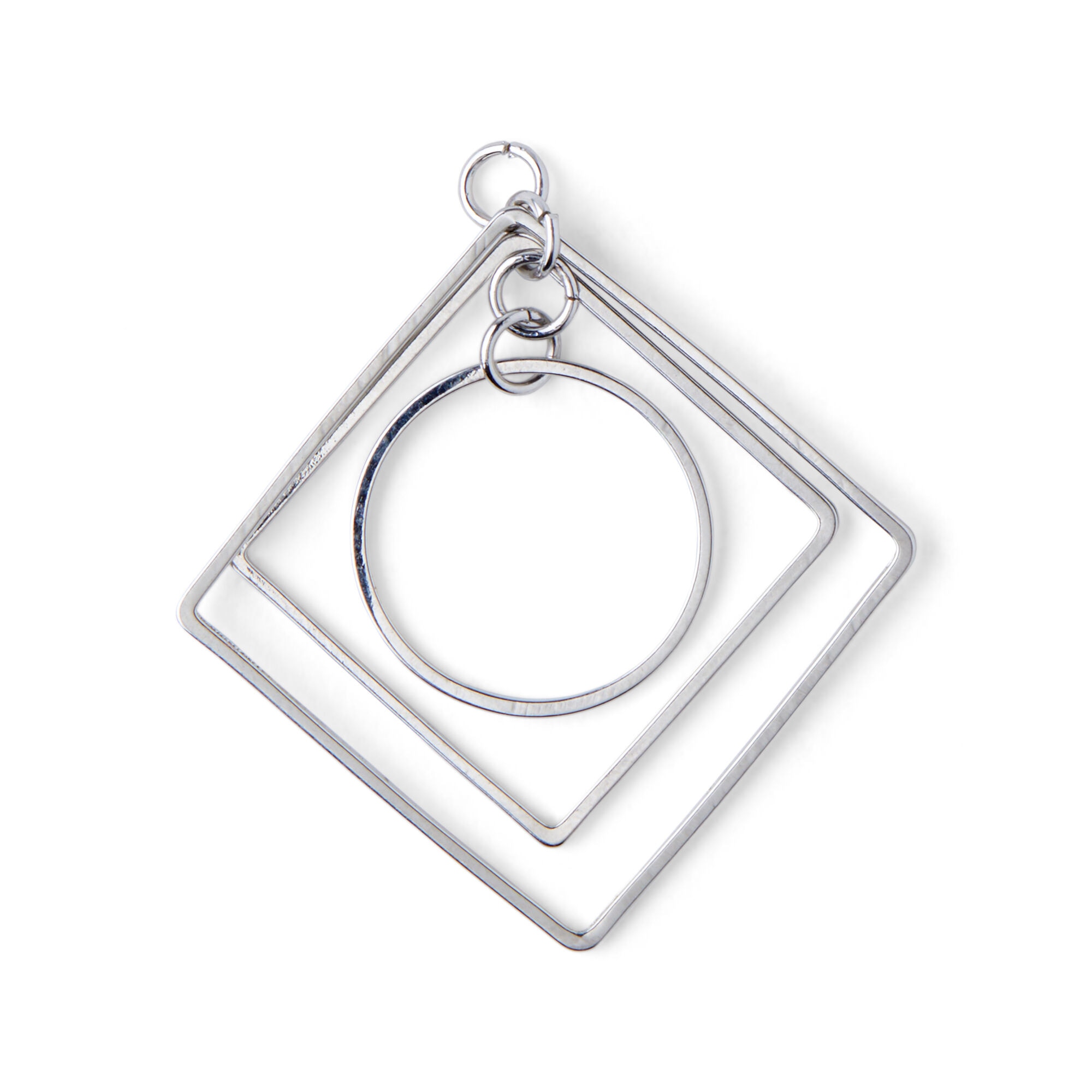 Exuding a simple yet elegant design, the hildie & jo Square & Round Pendant-Silver will make a great addition to your collection. It features two hollow squares with a hollow circle in the center, and will look perfect when paired with a sleek chain, sold separately.