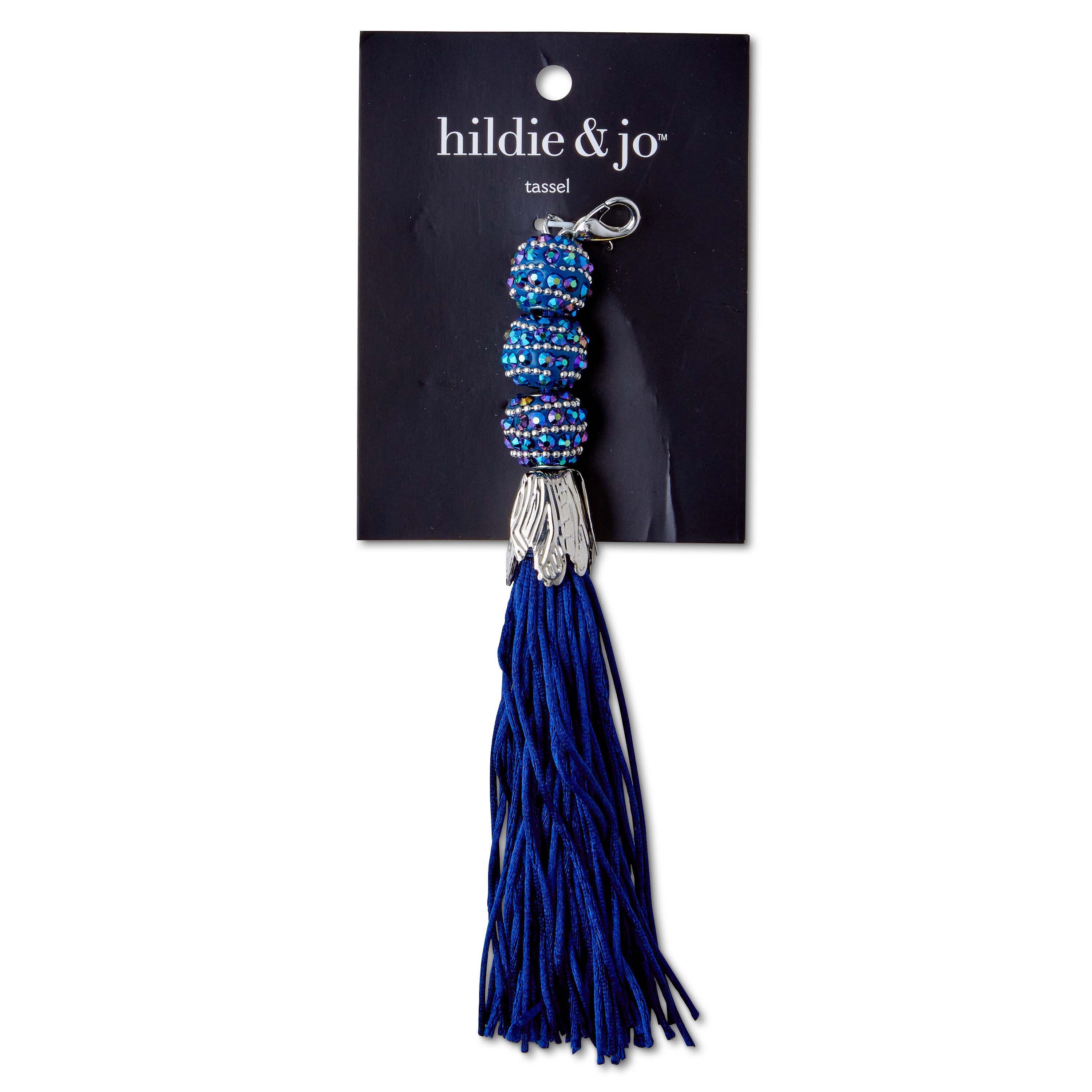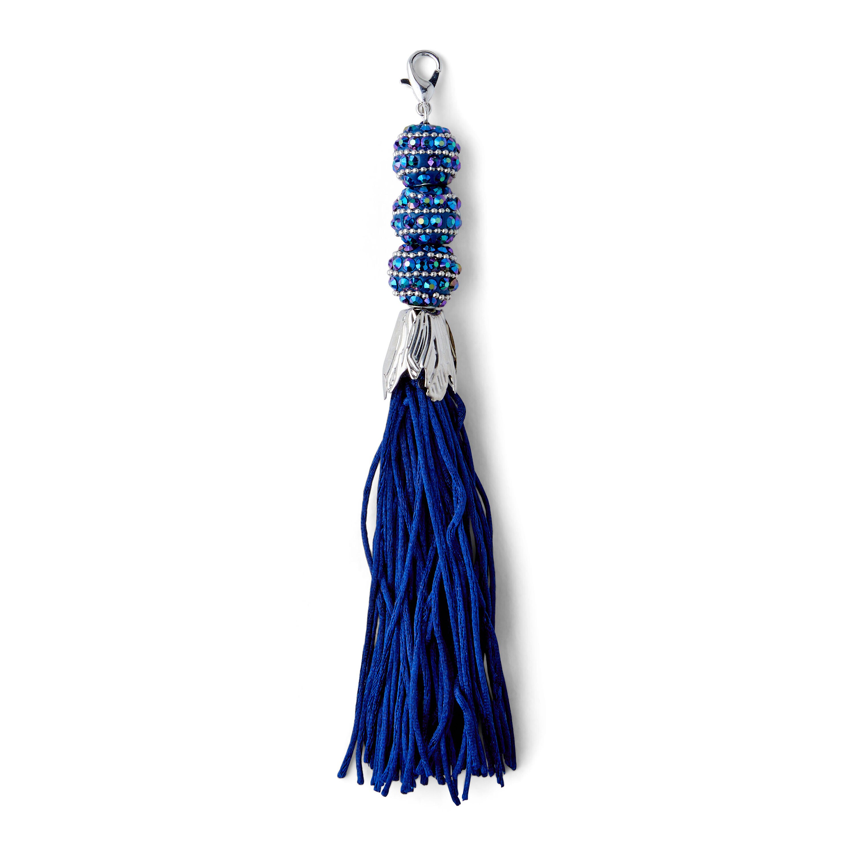 Enliven your jewelry and traditional craft projects using the hildie & jo Effortless Charm Silver Tassel-Blue Beads. The top of the tassel has blue beaded round balls, while the tassel is made of blue leather-like fabric. It has a lobster clasp which you can fasten on a keychain or fancy backpack to add a touch of zing and grace.