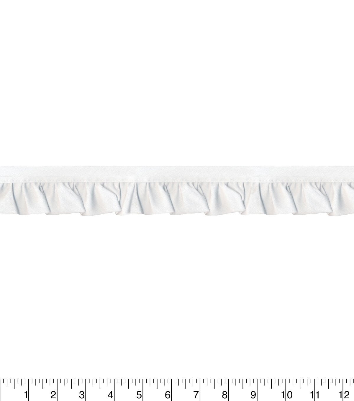 The Simplicity Quilt Binding Ruffled Trim-White will make a great addition to your sewing supplies. You can use it to decorate your handmade pillows, apparel, costumes, lampshades, cushions and more.