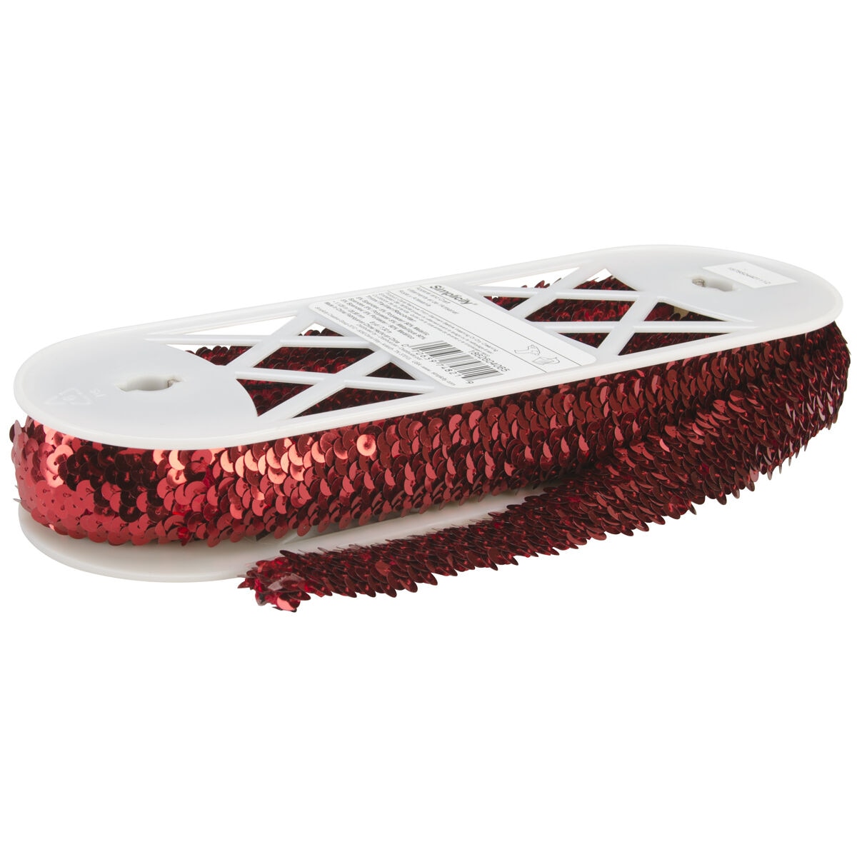 Use the Simplicity 3-row Stretch Trim-Red to decorate a wide range of paper and fabric projects. This metallic, spandex and polyester trim in red comes embellished with sequins, and will make your creations sparkle.