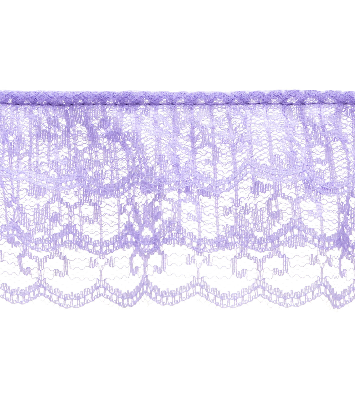 Decorating your fabric creations will be fun with the Simplicity 3-tier Lace Ruffled Trim-Lavender. You can use it to embellish your handmade totes, wallets, apparel, lampshades, cushion pillows and more.