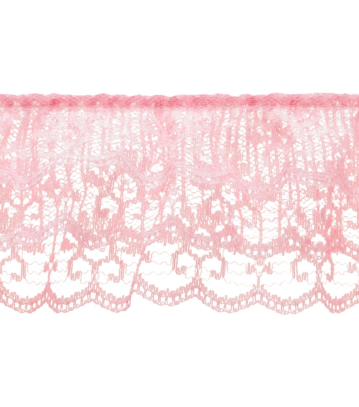 Decorating your fabric creations will be fun with the Simplicity 3-tier Lace Ruffled Trim-Pink. You can use it to embellish your handmade totes, wallets, apparel, lampshades, cushion pillows and more.