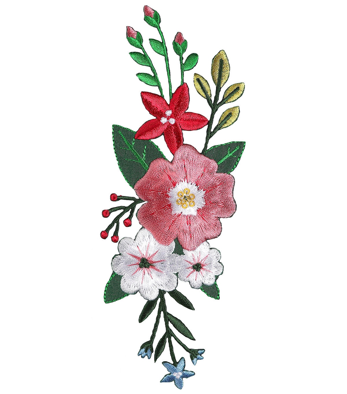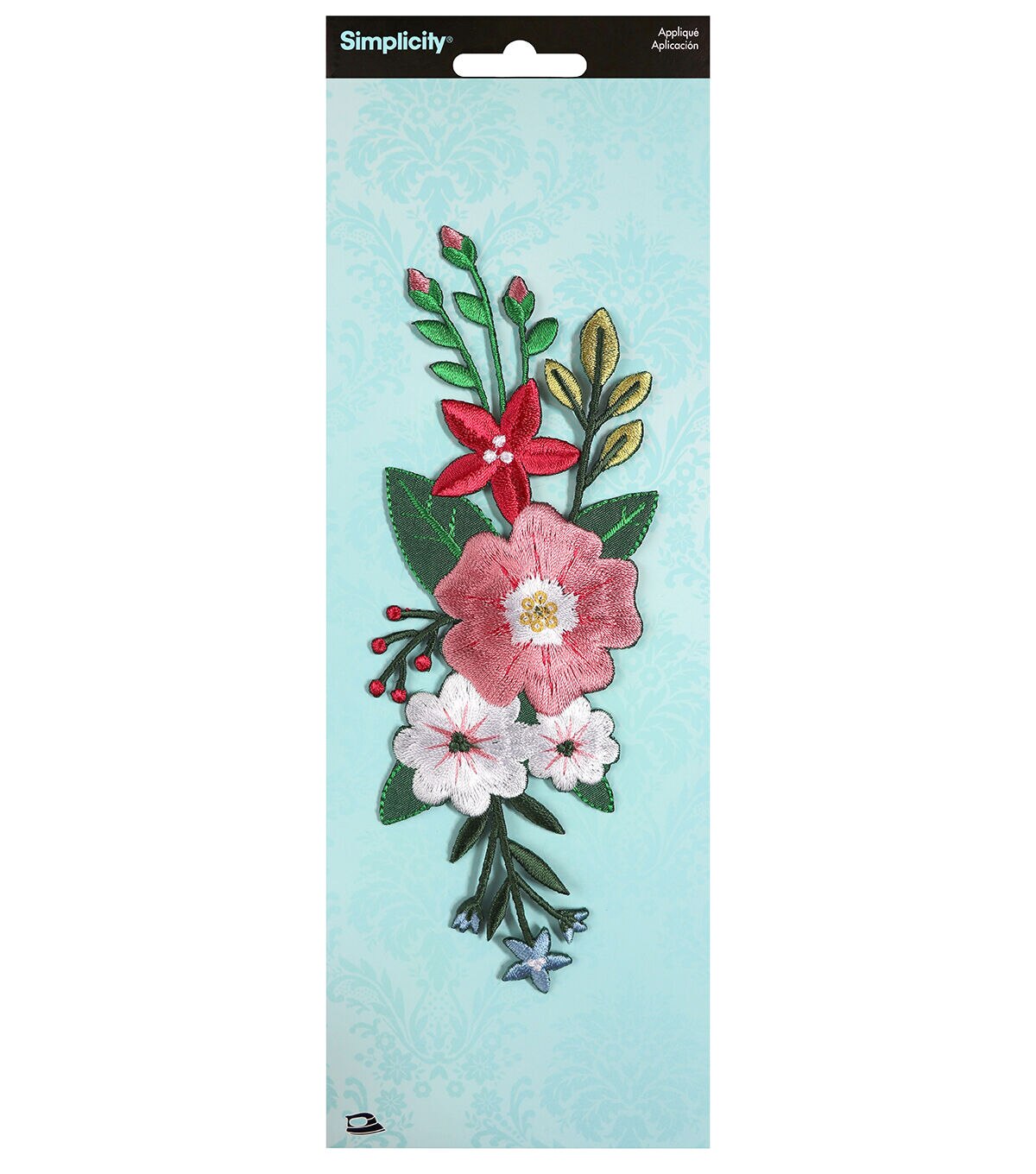 This beautiful stitched, multicolored, embroidered Simplicity Large Thick Stitch Flower Iron-on Applique-Multi flaunts a bunch of flowers, buds and foliage. It will look great on apparel, totes, bags, pillows, hats and more. When ironing, use cloth to cover the easy iron-on applique. The flow instructions for ironing methods and time are given on the pack.