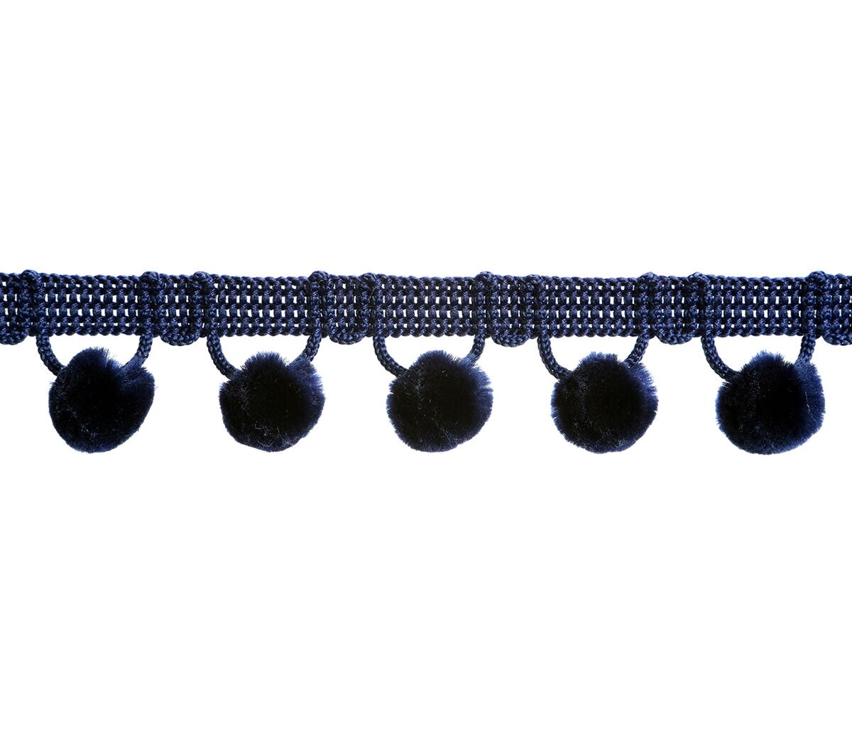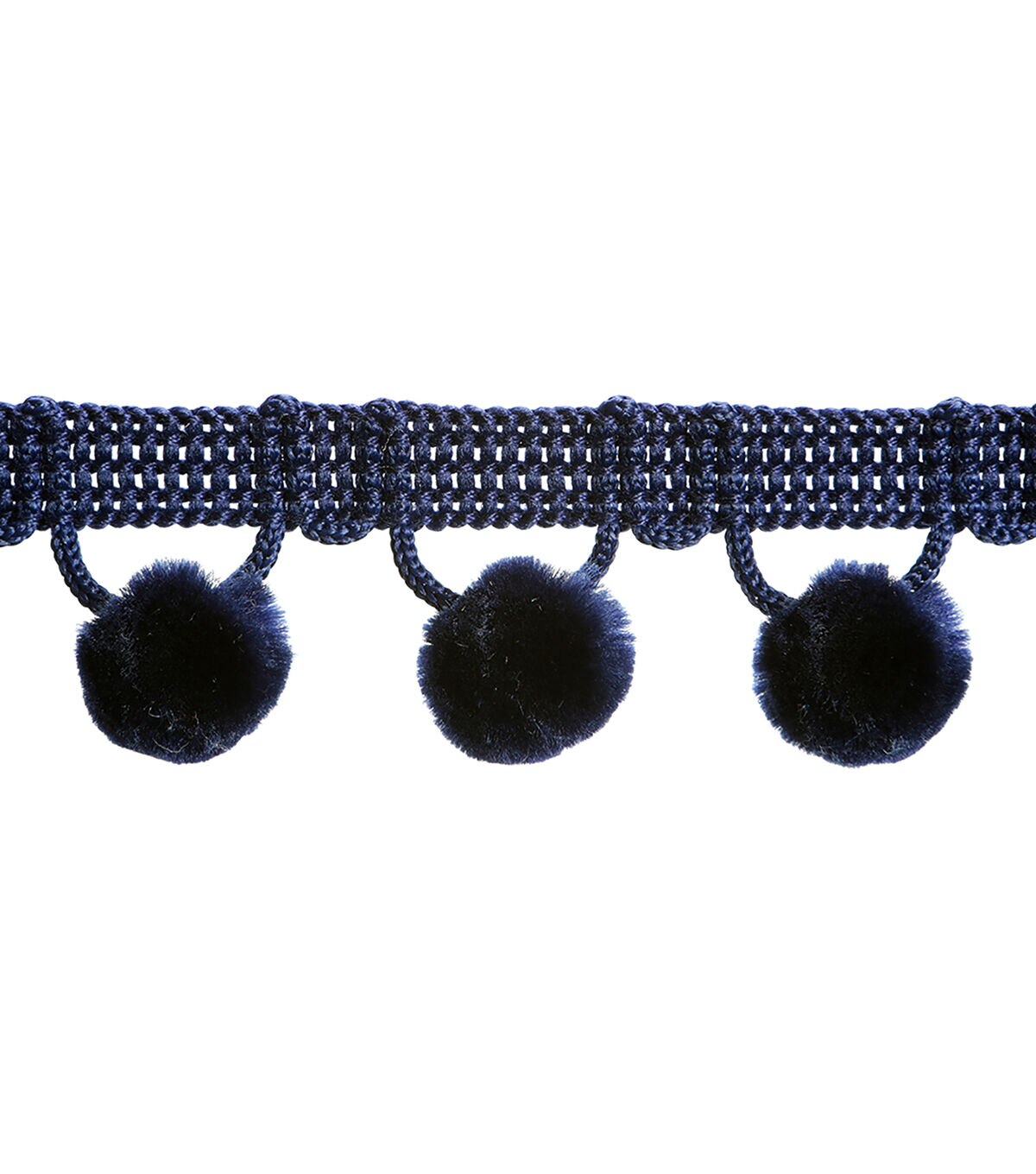 Finish your sewing and fabric projects in style with the Simplicity Ball Fringe Trim-Navy. It is perfect to embellish pillow covers, lampshades, cushion covers, apparel, hats, totes and more.