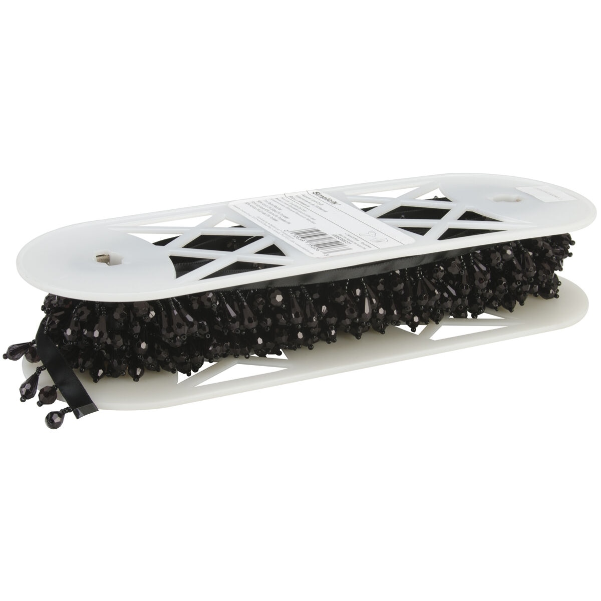 Use the Simplicity Beaded Fringe Trim-Black to add visual interest to your sewing and crafting projects. You can add elegance to dresses, skirts, cushion covers and more using this beautiful black beaded fringe trim. This pack contains 10 yards of acrylic, glass and polyester fringe.