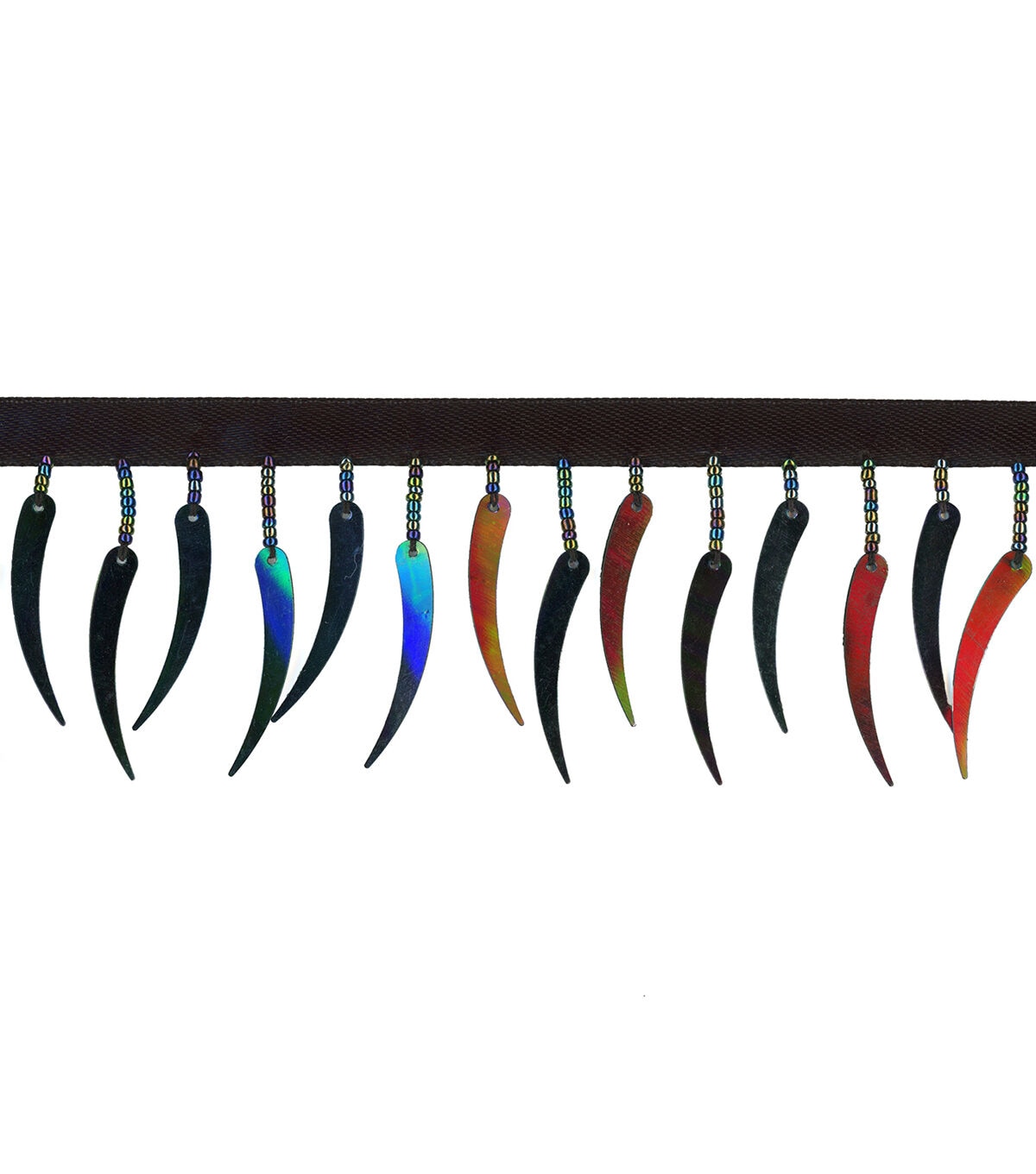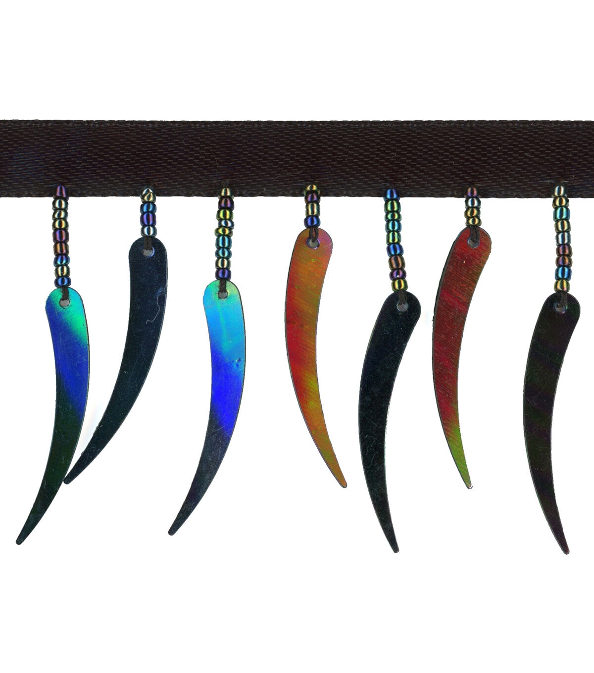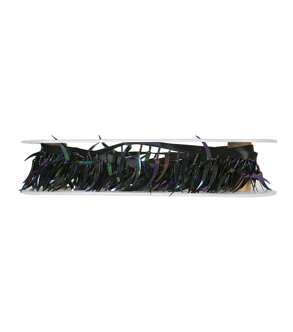 Add visual flair to a handmade fabric tote or lampshade using the Simplicity Crescent Trim-Black Iridescent. You can also use it to decorate your papercrafting projects.
