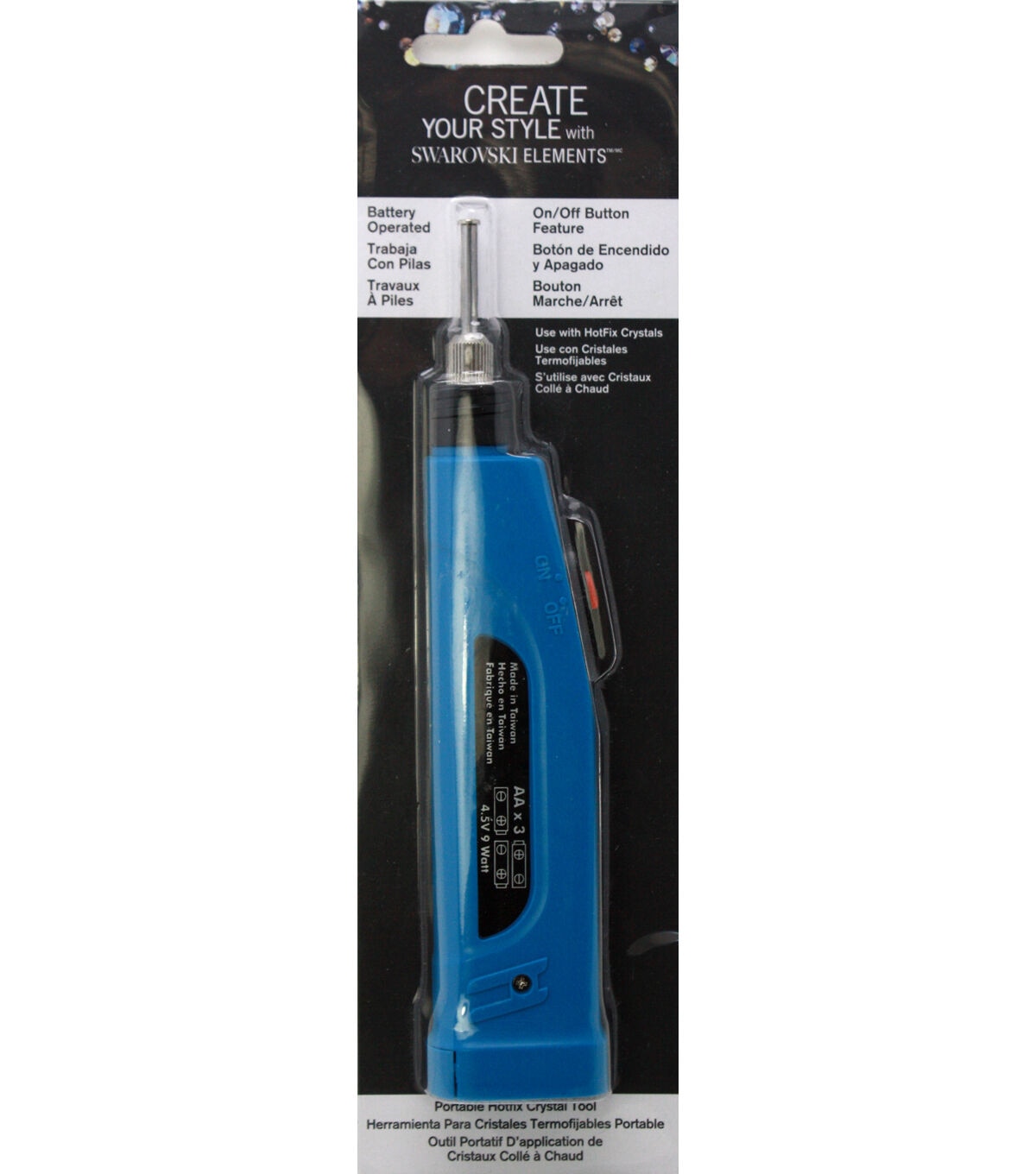 The Simplicity Crystal Hotfix Tool is your go-to device for embellishing your crafts with a sparkle. This portable, battery-operated tool is designed for use with Hotfix crystals, ensuring a firm and appealing attachment to your creative projects. Made in Taiwan, this tool features a user-friendly on and off switch and runs on a 4.5V watt power output with 3 double A batteries. Brought to you by Simplicity, a well-known brand in the crafting industry, this tool enables you to "Create Your Style with Swarovski Elements," bringing a luxurious touch to your crafts.