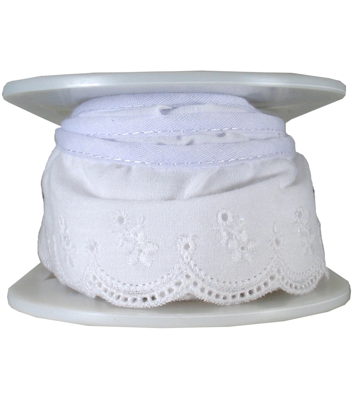 Decorating your fabric creations will be fun with the Simplicity Daisy Trim-White. You can use it to embellish your handmade totes, wallets, apparel, lampshades, cushion pillows and more.
