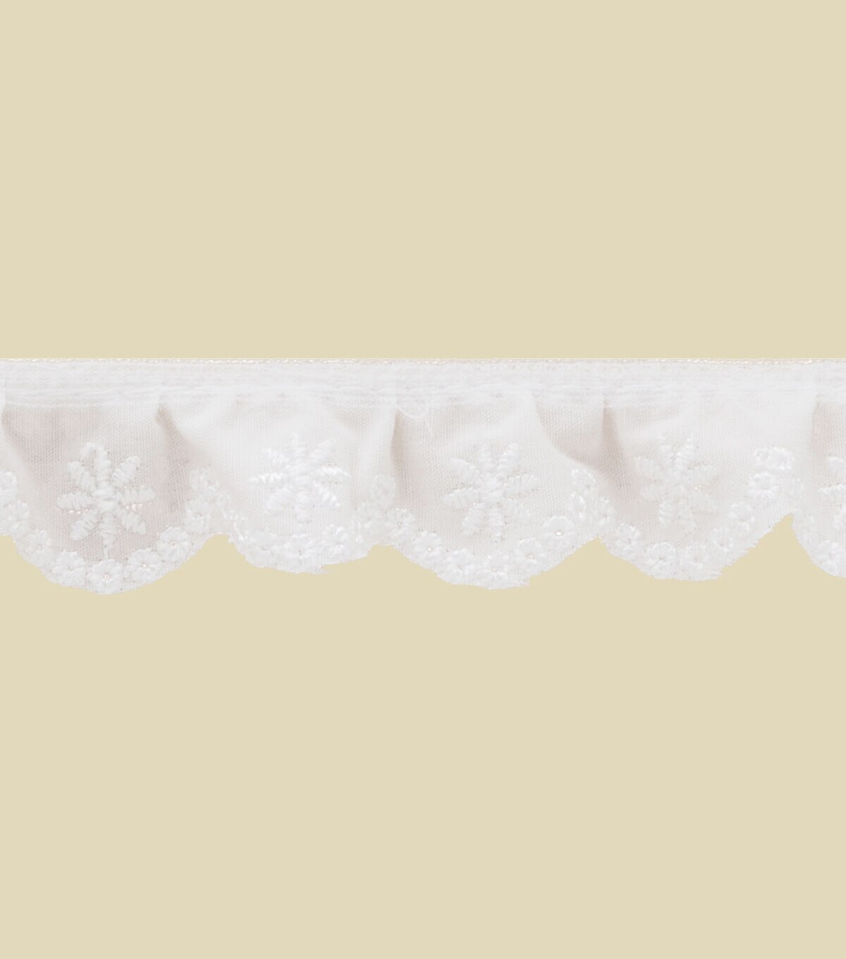 Add charming ruffled edges to your fabric projects with the Simplicity Eyelet Apparel Trim-White. This lovely ruffled eyelet apparel trim is perfect to add a dainty edge to costumes, skirts, hemlines, shirt sleeves, necklines and more. You can also use it to accentuate your scrapbooking and other papercrafting projects.