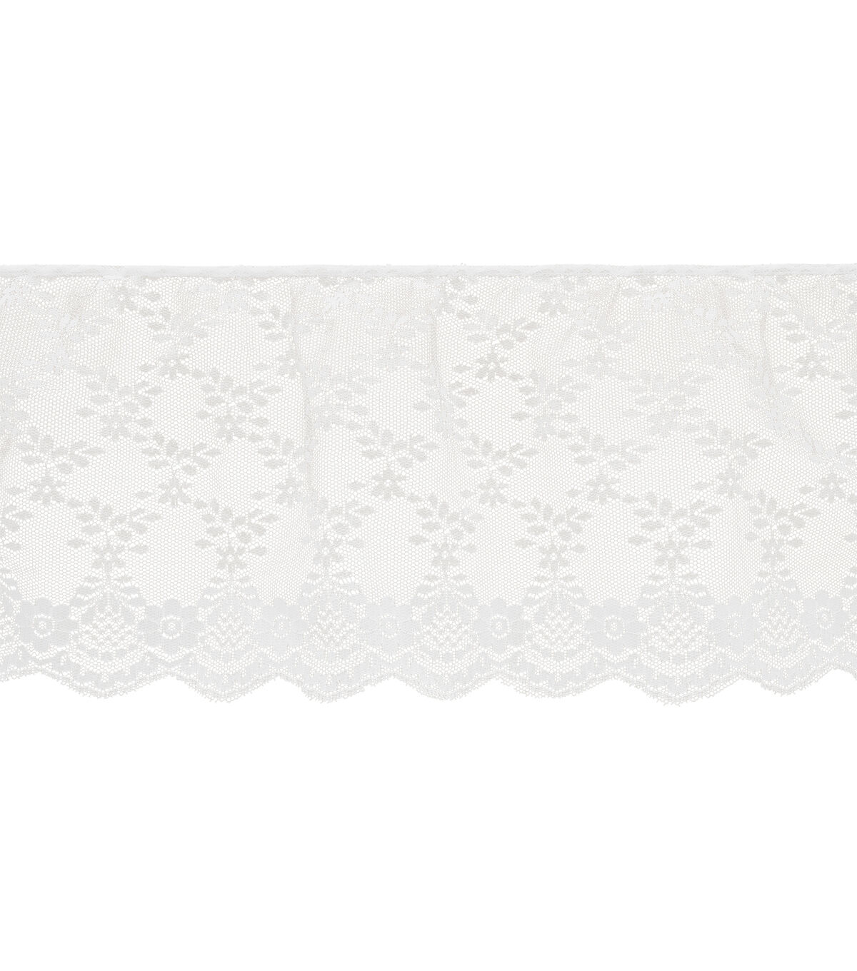 The Simplicity Fancy Lace Ruffled Trim-White will make a great addition to your sewing supplies. You can use it to decorate your handmade pillows, apparel, costumes, lampshades, cushions and more.