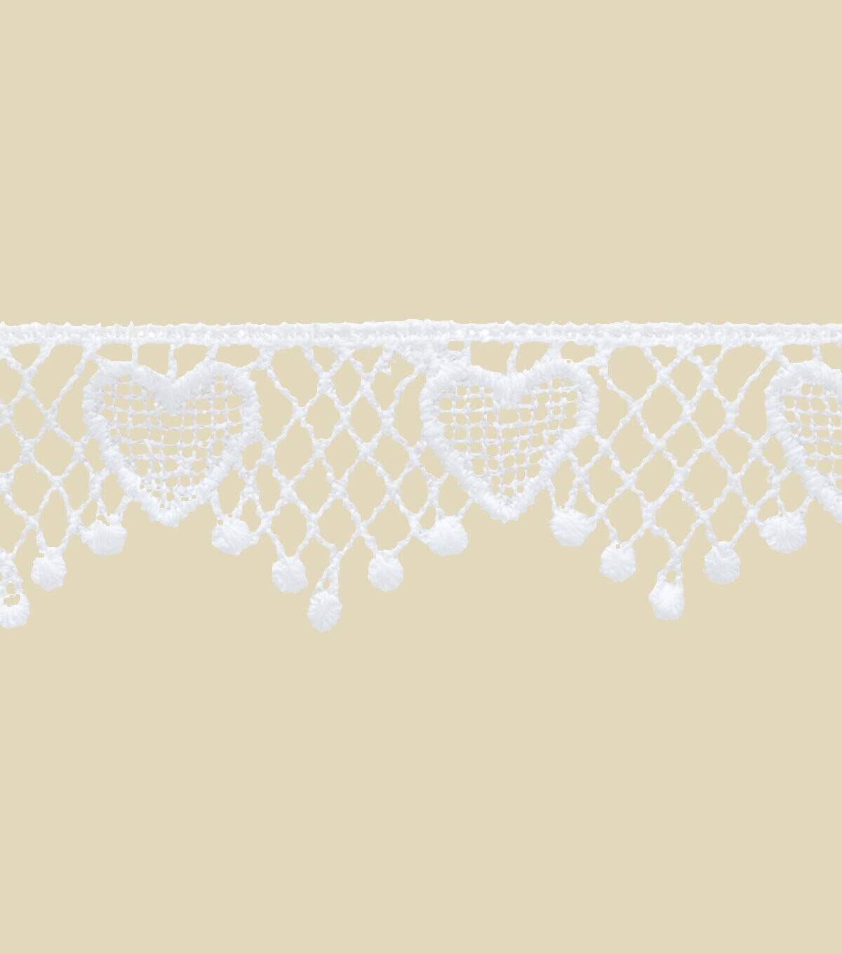 Add pretty vintage-inspired lace borders to your apparel, home decor or fashion accessories, doll houses and more using the Simplicity Heart Apparel Trim-White. The lace apparel trim features a dainty heart-drop design with scalloped motifs. Sew it along the edges of your skirt hems, period drama costumes, cushion covers, lampshades, baby quilts and more. This pack includes a 4-foot spool of 1-inch wide apparel trim.
