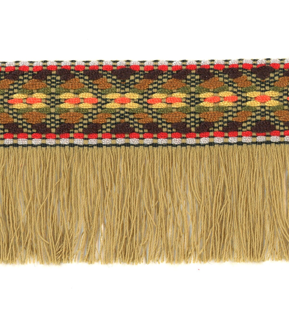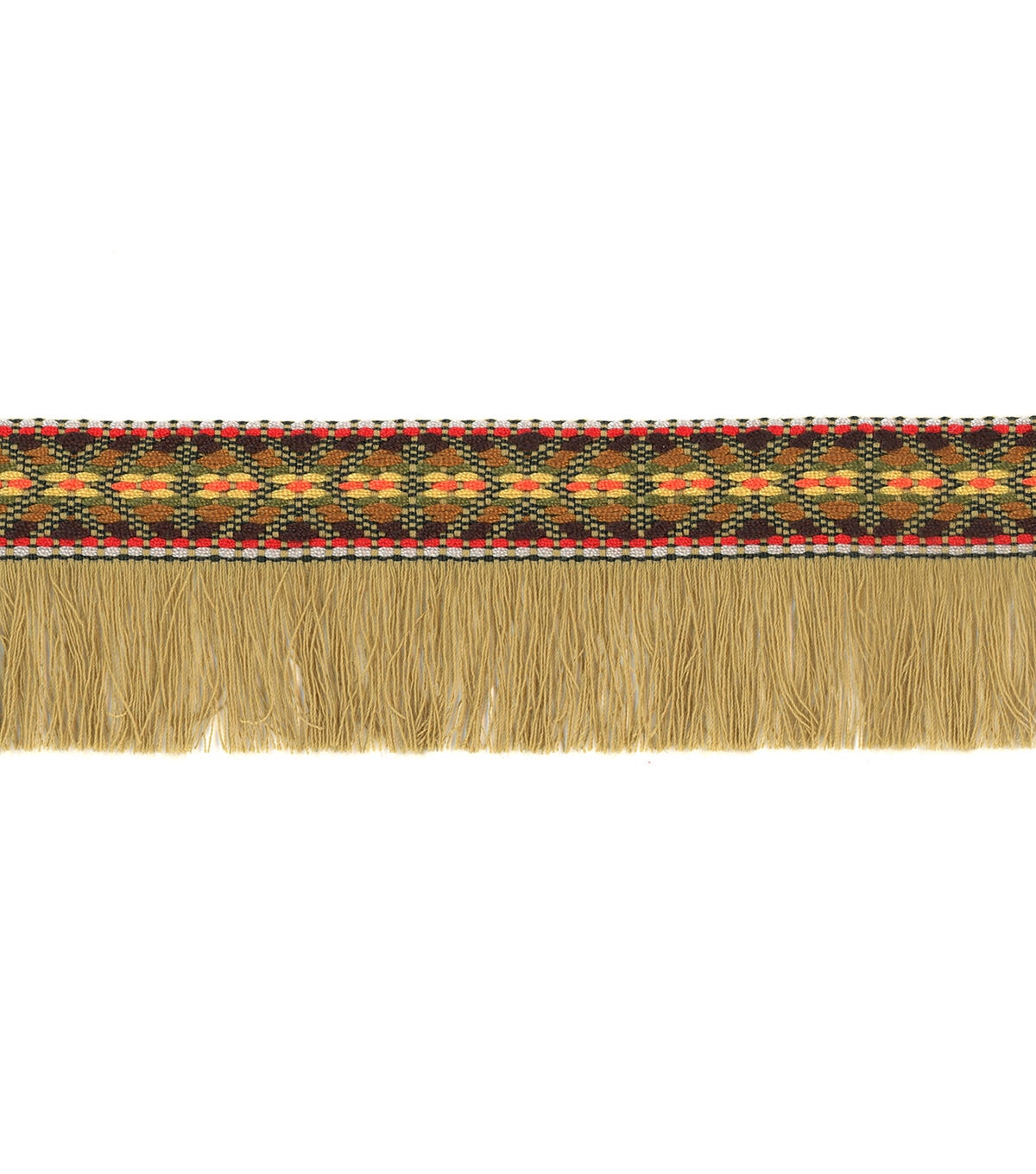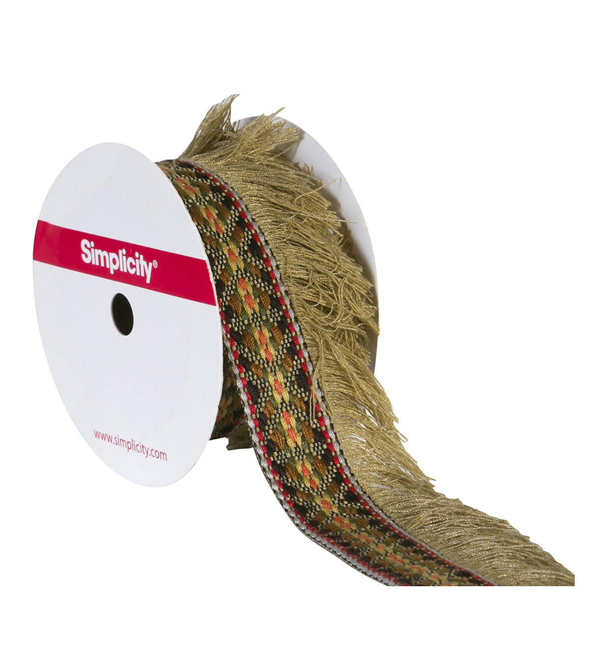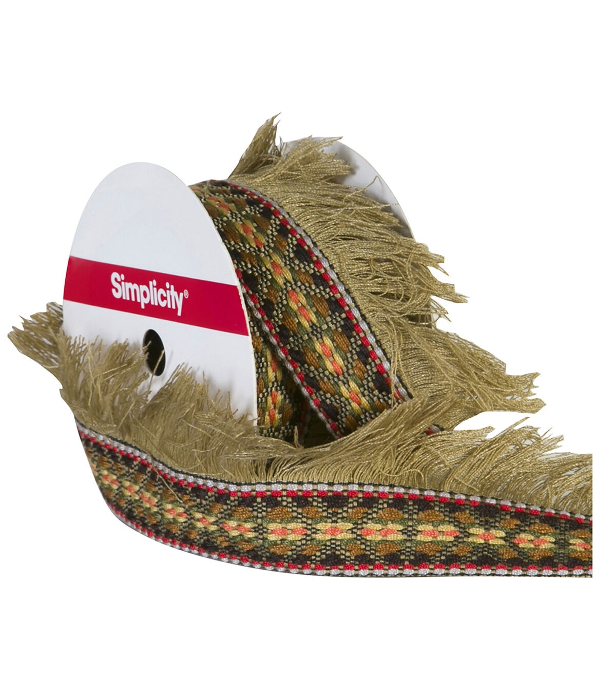 Decorating your fabric creations will be fun with the Simplicity Jacquard Tape Fringe Trim-Natural. You can use it to embellish your handmade totes, wallets, apparel, lampshades, pillows and more.