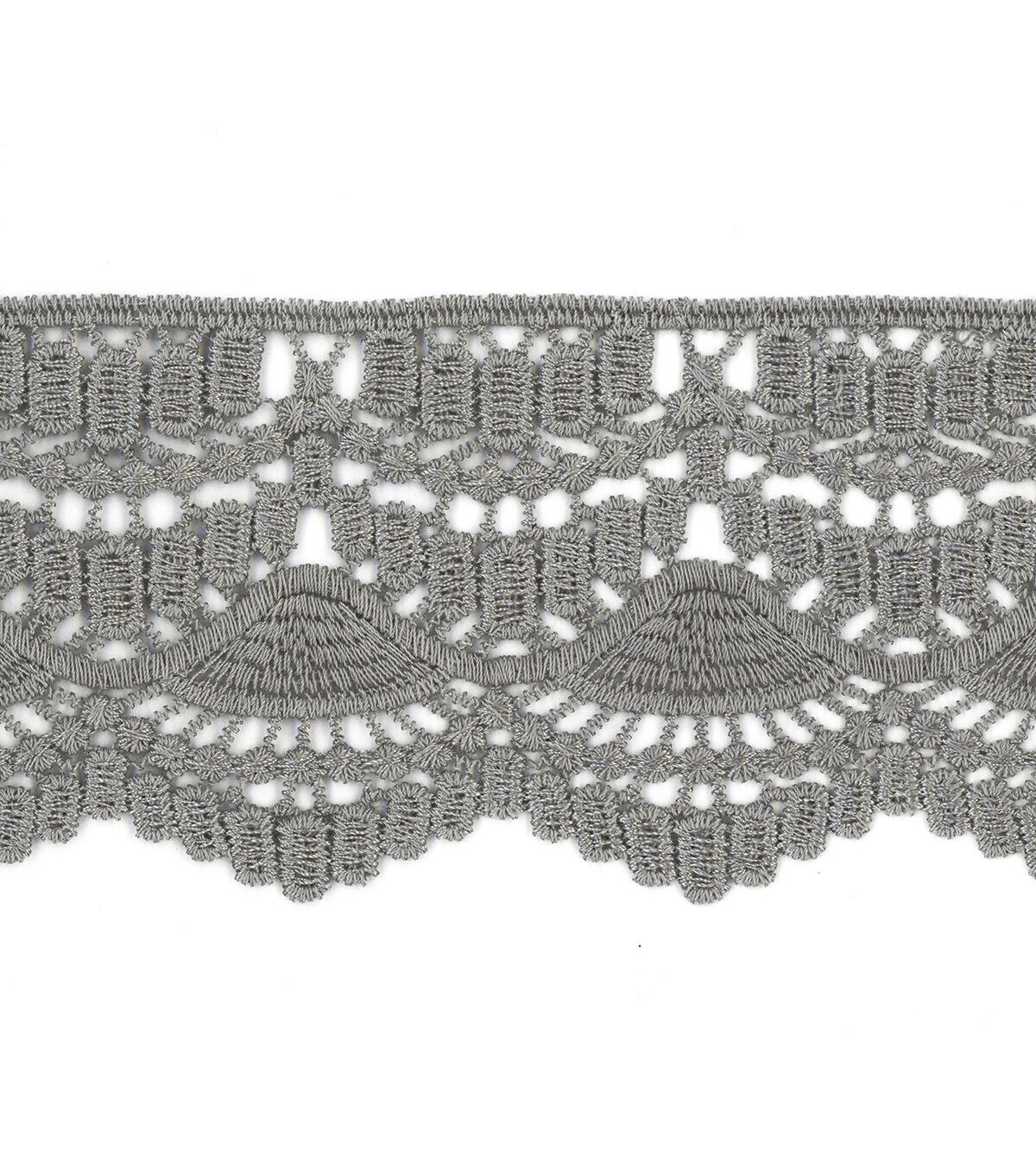 Add visual flair to a handmade fabric tote or lampshade using the Simplicity Knit Lace Trim-Gray. You can also use it to decorate your papercrafting projects.