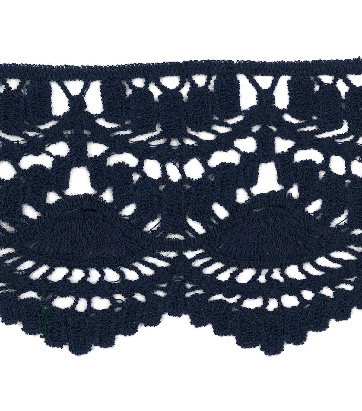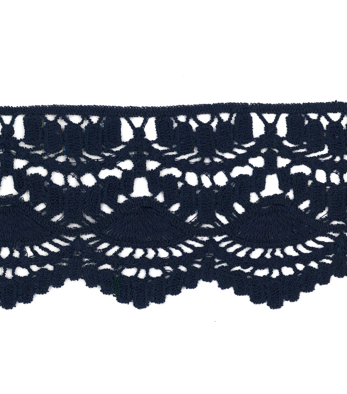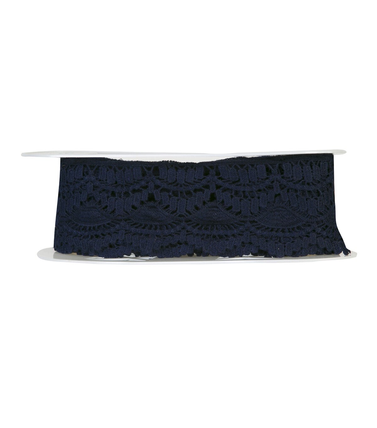 Add visual flair to a handmade fabric tote or lampshade using the Simplicity Knit Lace Trim-Navy. You can also use it to decorate your papercrafting projects.
