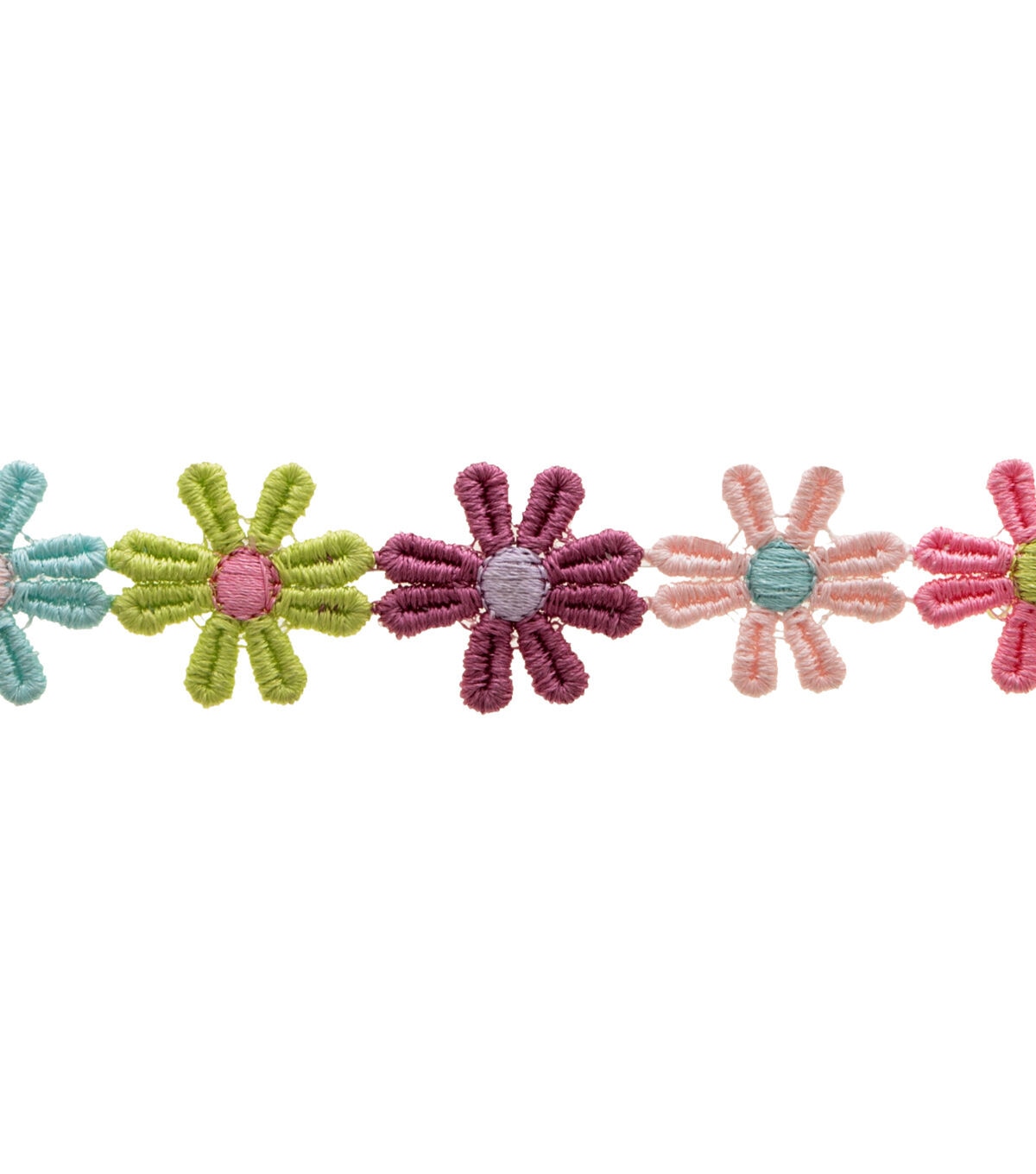 Decorating your fabric creations will be fun with the Simplicity Large Daisy Trim-Multi. You can use it to embellish your handmade totes, wallets, apparel, lampshades, cushion pillows and more.