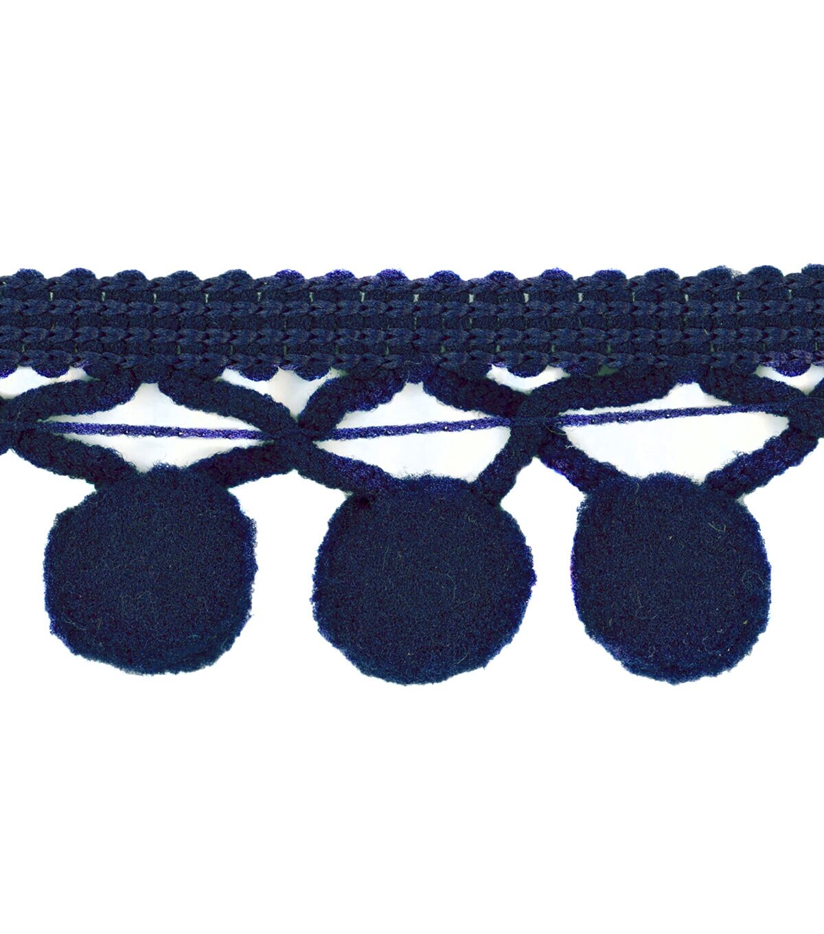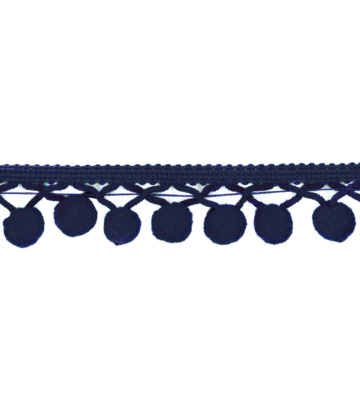 Make sewing more fun by adding the Simplicity Lattice Pom Pom Trim-Navy to your sewing supplies. You can use this trim to decorate handkerchiefs, scarves, totes, wallets, lampshades, tea cozies and more.