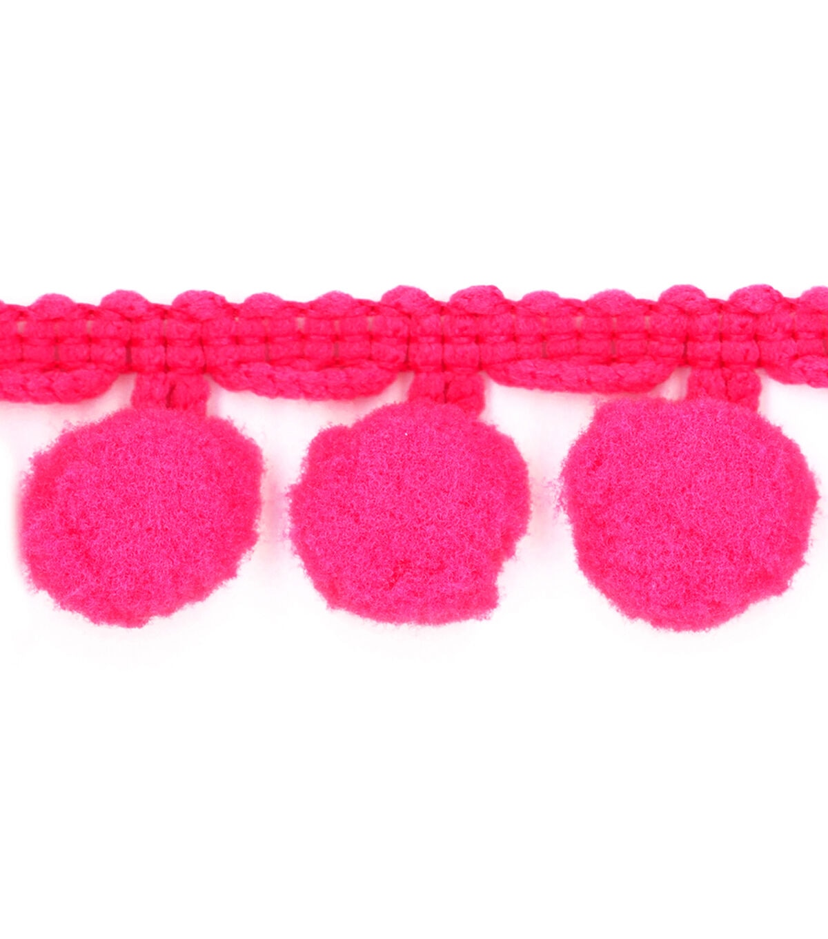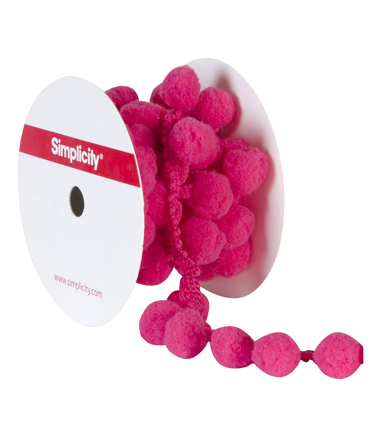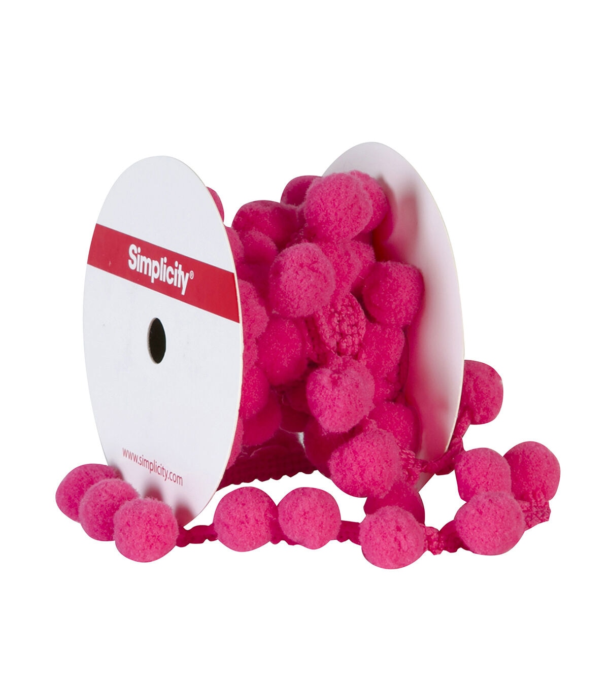 Take your crafting skills to a new level with the Simplicity Medium Pom Pom Trim-Fuschia. This beautiful trim will lend the perfect finishing touch to your DIY pillow and cushion covers, lampshades, totes and more.