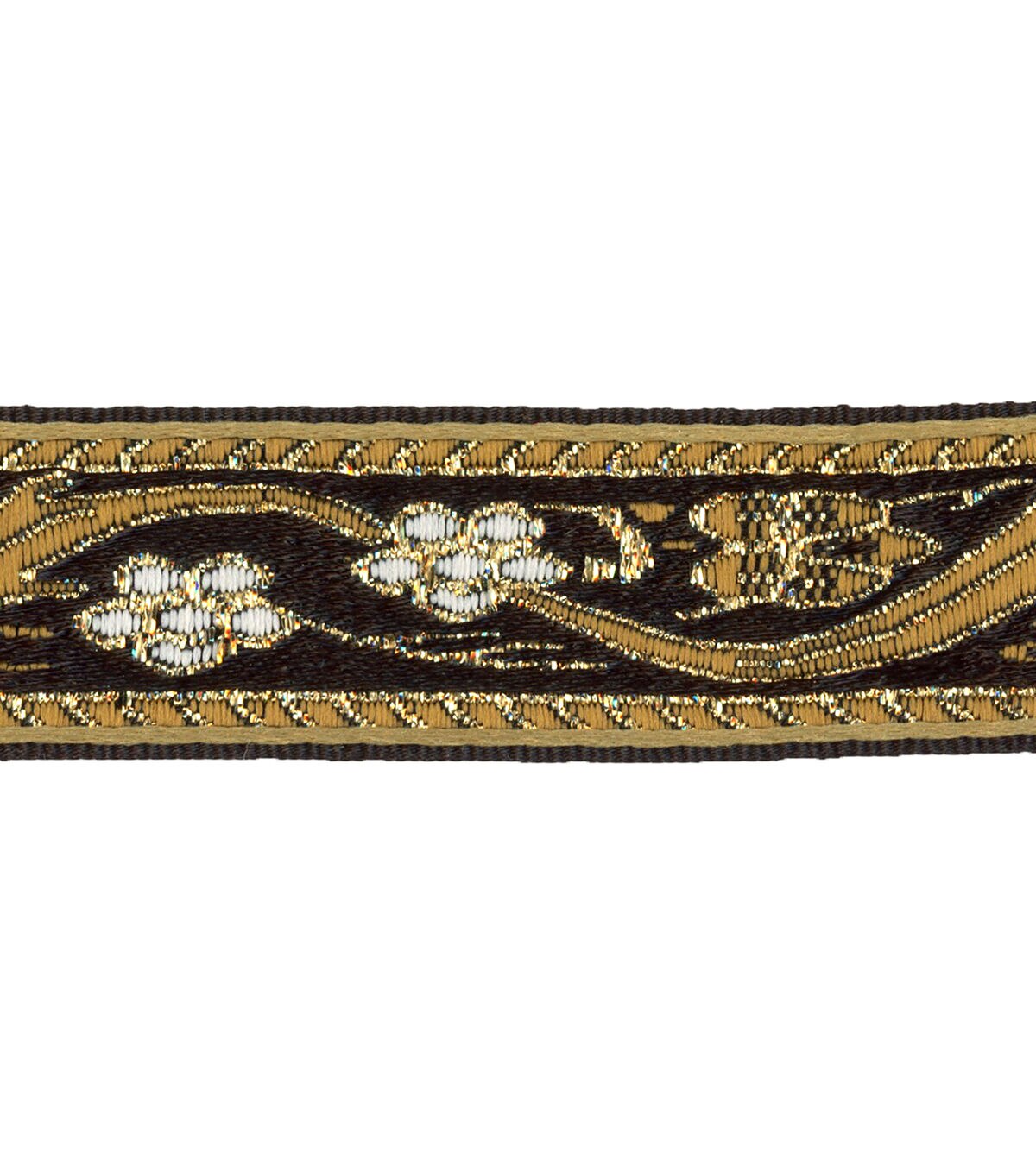The Simplicity Metallic Band Trim-Brown & Gold Floral will make a great addition to your sewing supplies. You can use it to decorate your handmade pillows, apparel, costumes, lampshades, cushions and more.