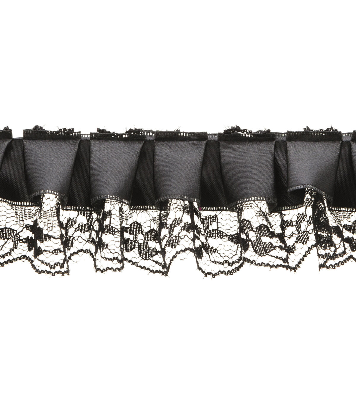 Decorating your fabric creations will be fun with the Simplicity Pleated Satin & Lace Trim-Black. You can use it to embellish your handmade totes, wallets, apparel, lampshades, cushion pillows and more.