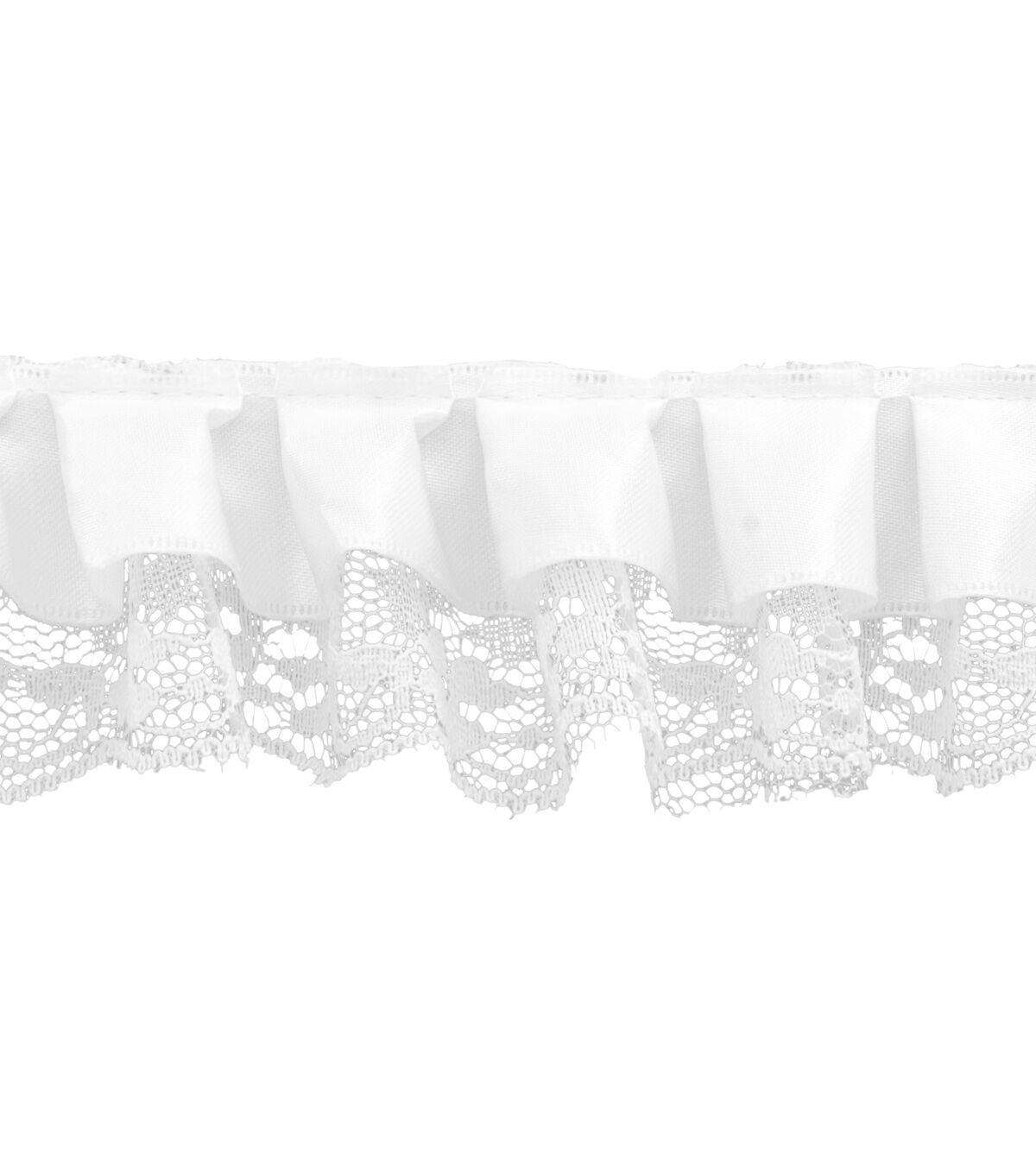 Decorating your fabric creations will be fun with the Simplicity Pleated Satin & Lace Trim-White. You can use it to embellish your handmade totes, wallets, apparel, lampshades, cushion pillows and more.