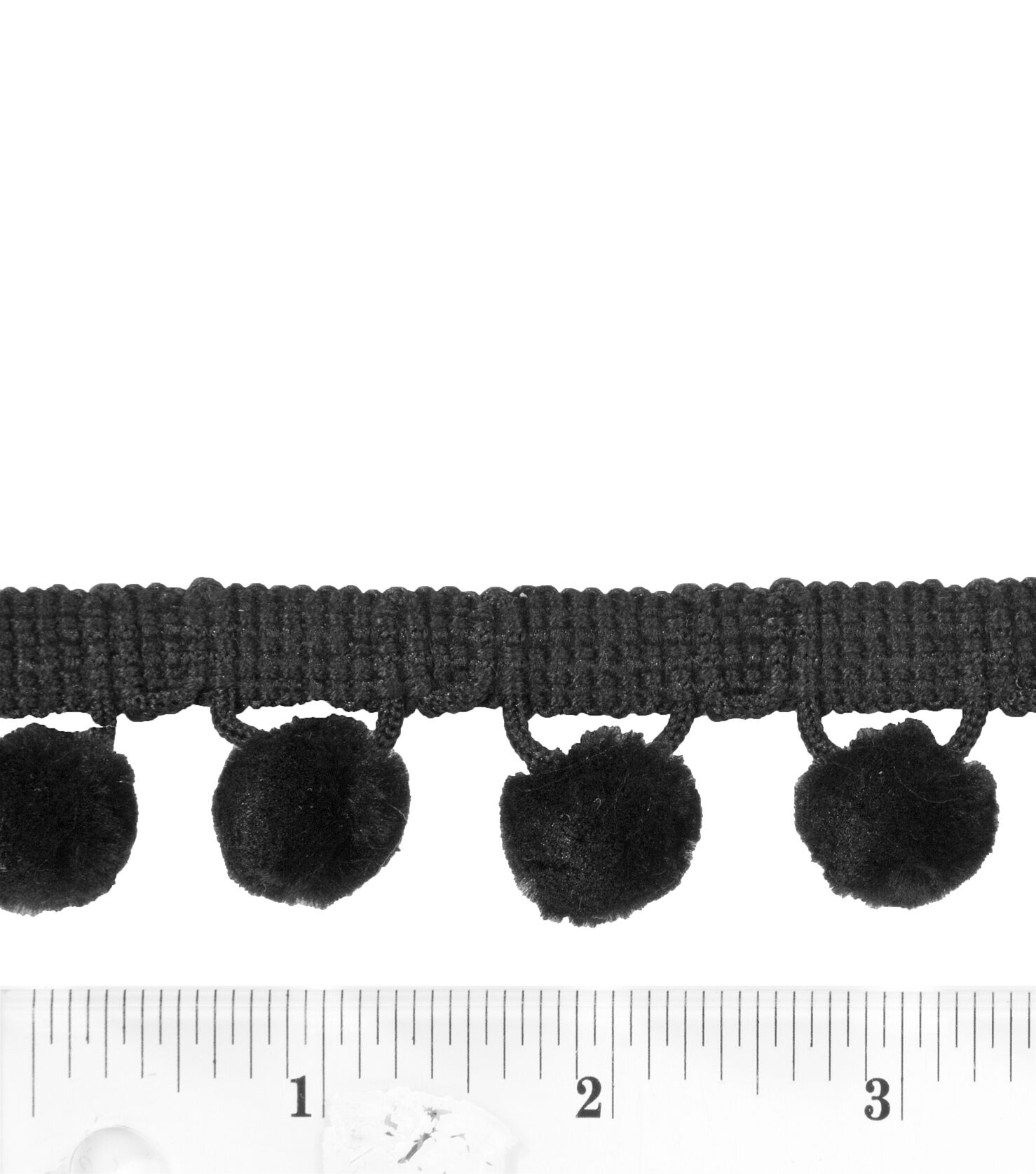 The Simplicity Poly Ball Fringe Trim-Black is a colorful, playful accent for children's apparel, costumes, accessories and home decor. It is designed with tiny pom poms in black.
