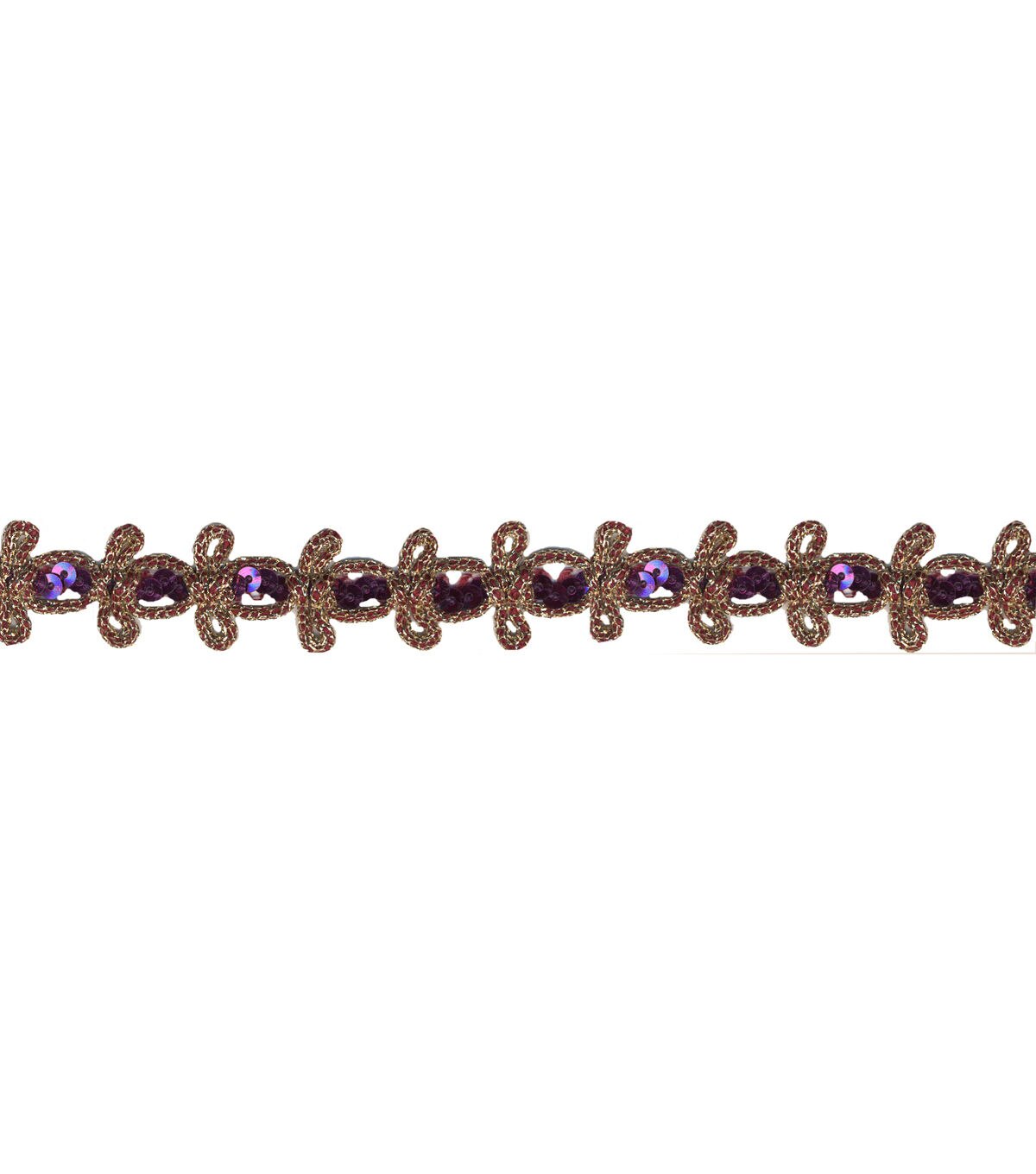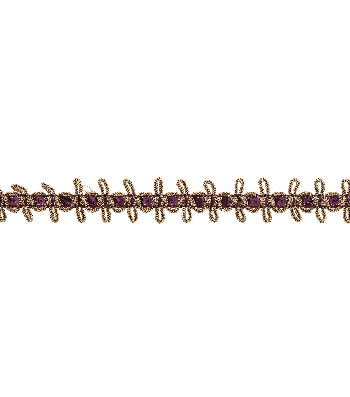 The Simplicity Sequin Bow Tie Trim-Wine & Gold will make a great addition to your sewing supplies. You can use it to decorate your handmade pillows, apparel, costumes, lampshades, cushions and more.