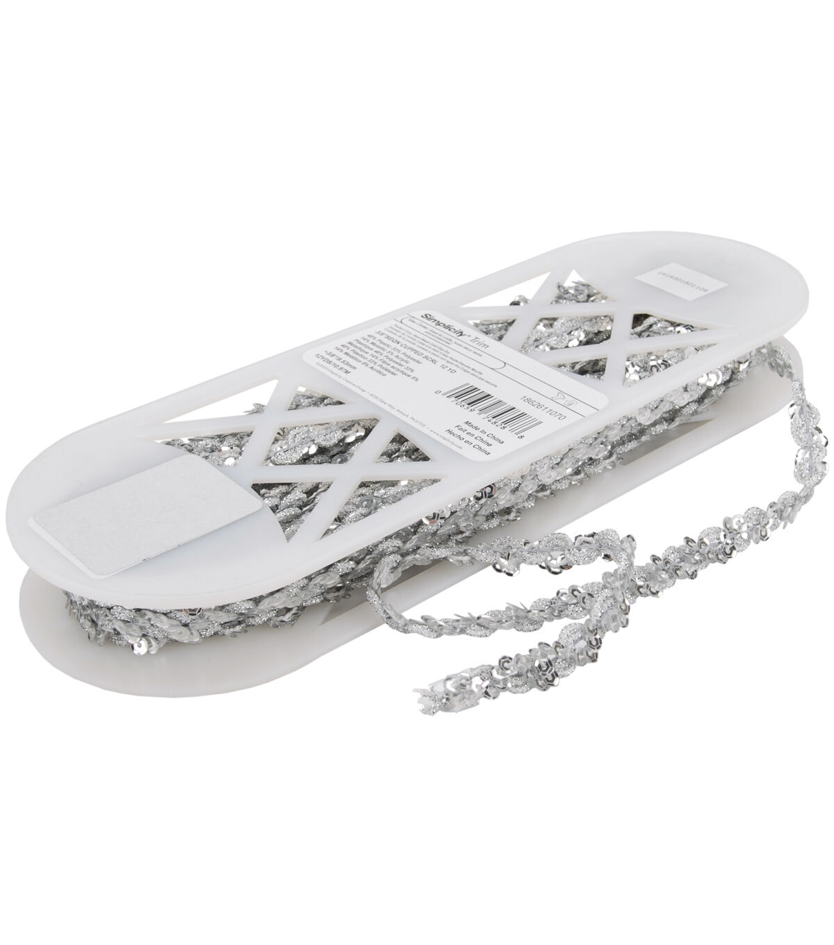Make your DIY creations unique by embellishing them with the Simplicity Sequin Cupped Scroll Trim-Silver. This apparel trim comes adorned with sequins and will make a great addition to your sewing supplies.