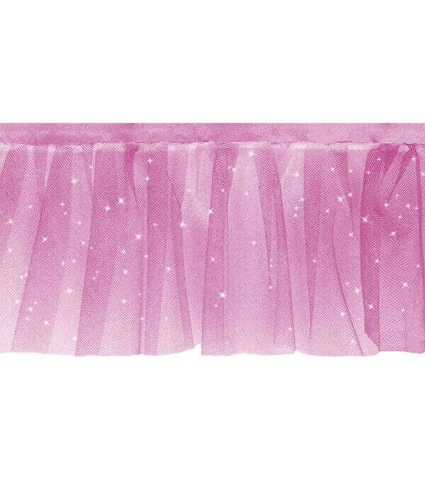The Simplicity Sparkle Tulle Trim-Pink will make a great addition to your sewing supplies. You can use it to decorate your handmade pillows, apparel, costumes, lampshades, cushions and more.
