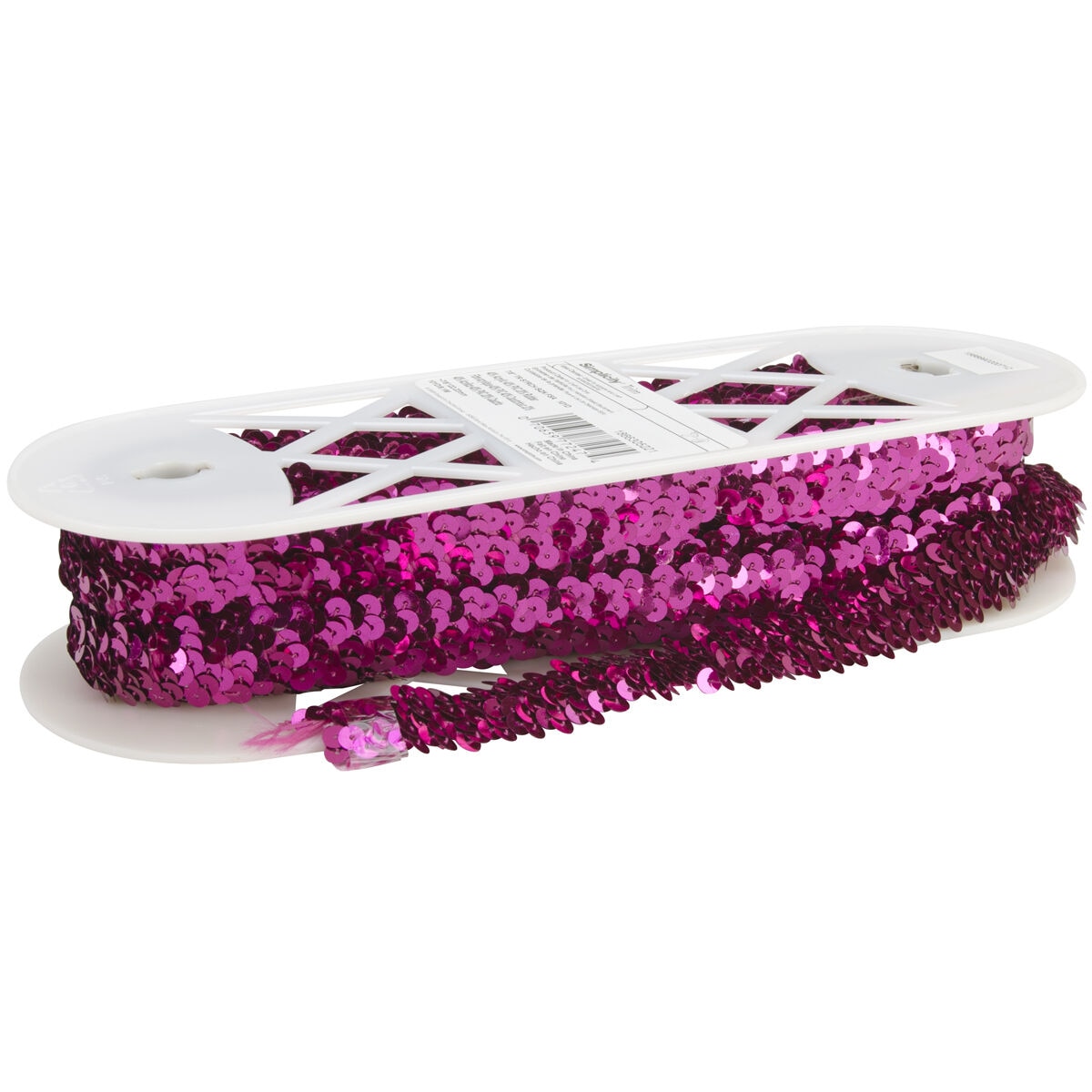 Use the Simplicity Stretchy Elastic Sequin Trim-Fuchsia to decorate a wide range of paper and fabric projects. This acrylic, PVC and rubber trim comes embellished with sequins, and will make your handmade creations sparkle.
