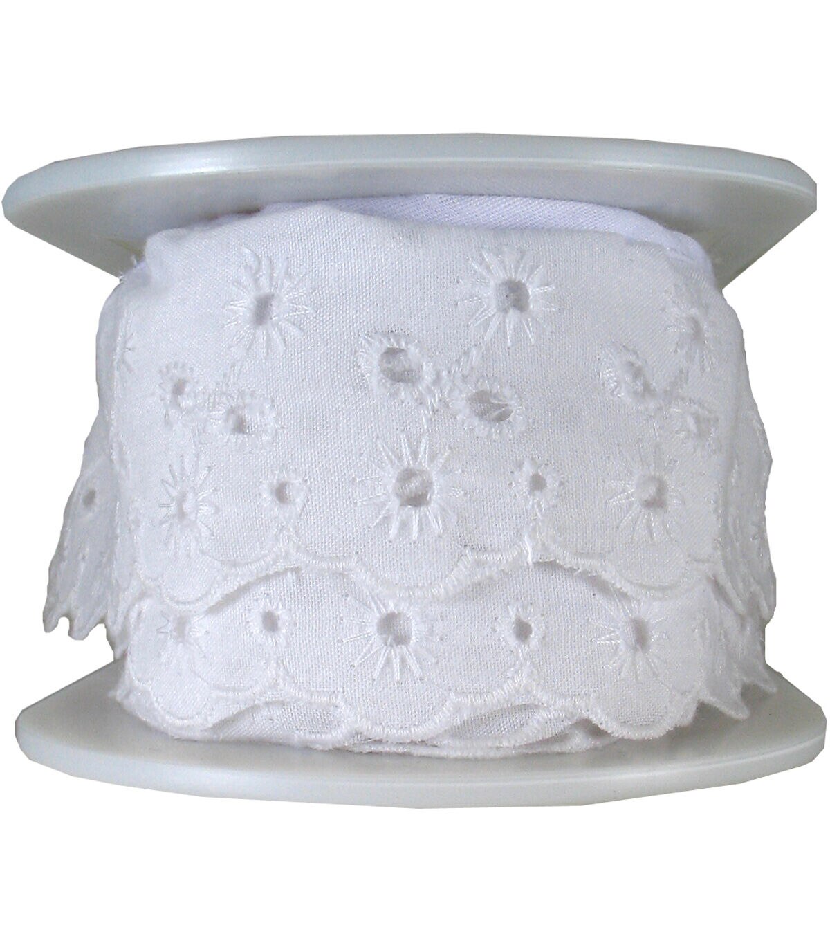 Finish your sewing and fabric projects in style with the Simplicity Sunburst Eyelet Trim. It is perfect to embellish pillow covers, lampshades, cushion covers, apparel, hats, totes and more.