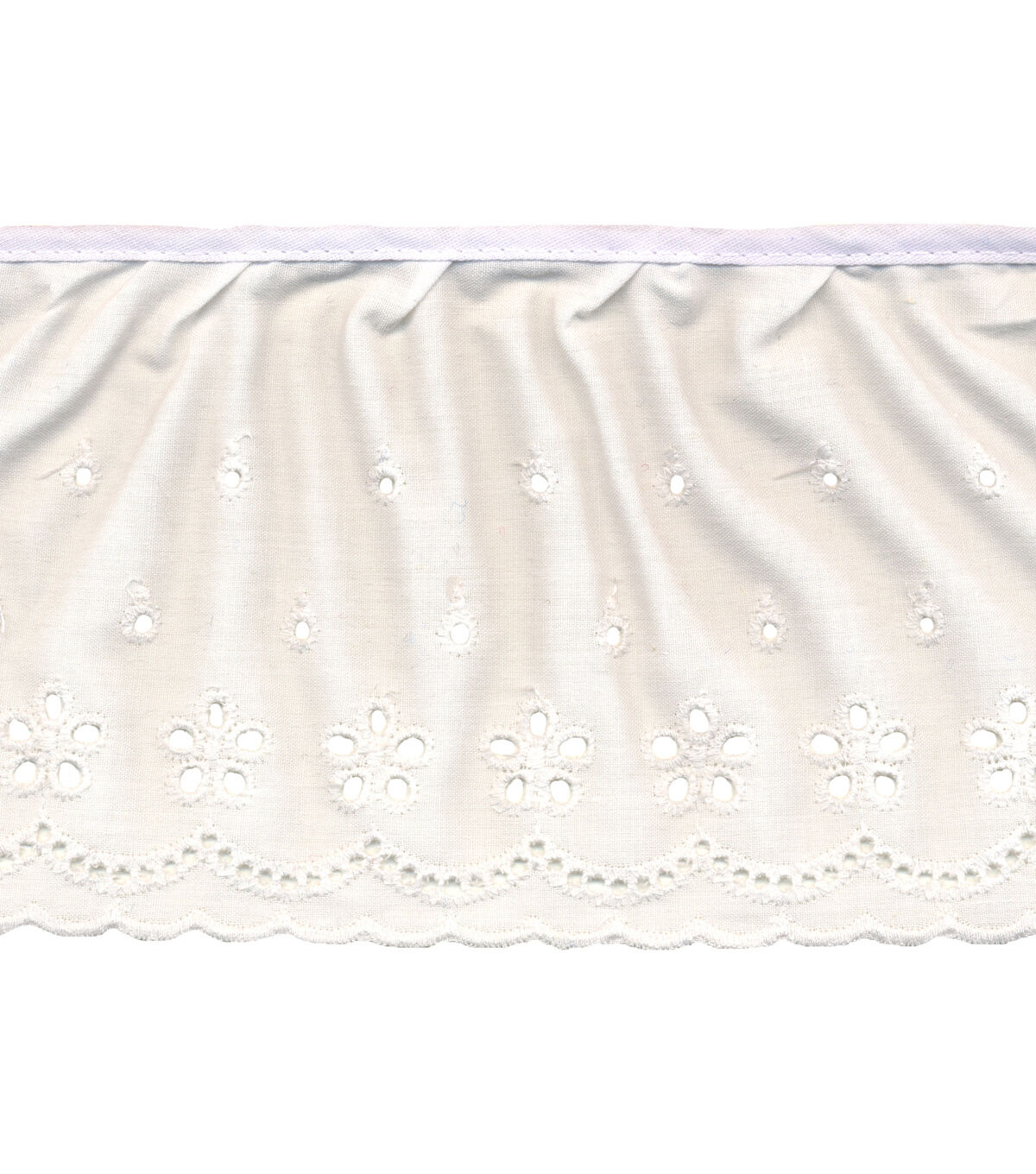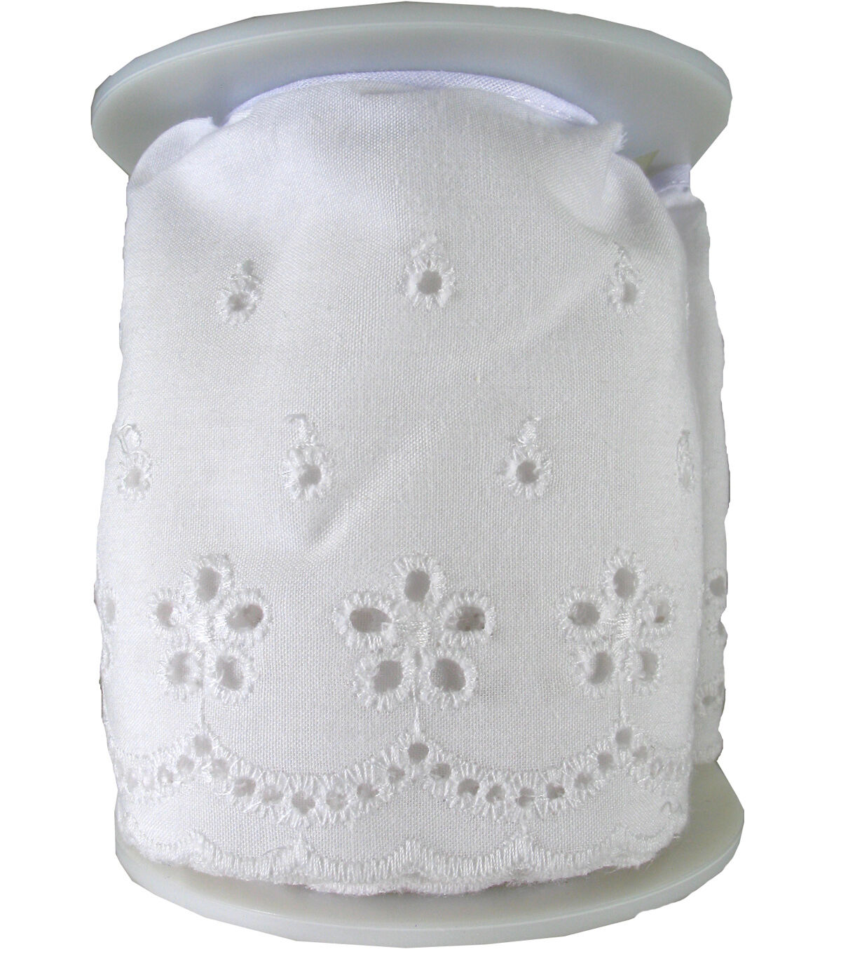 Decorating your fabric creations will be fun with the Simplicity Train Eyelet Trim-White. You can use it to embellish your handmade totes, wallets, apparel, lampshades, cushion pillows and more.