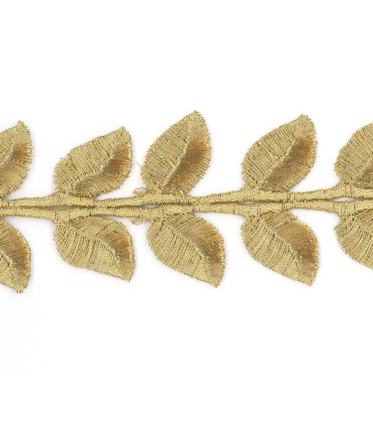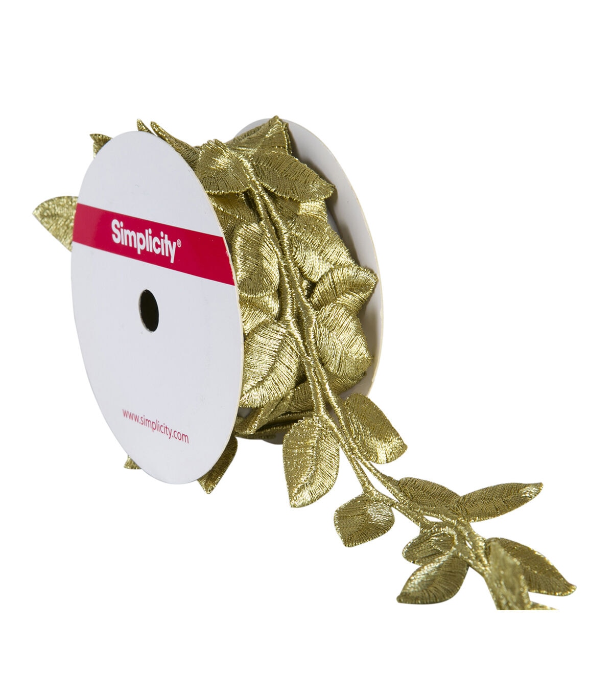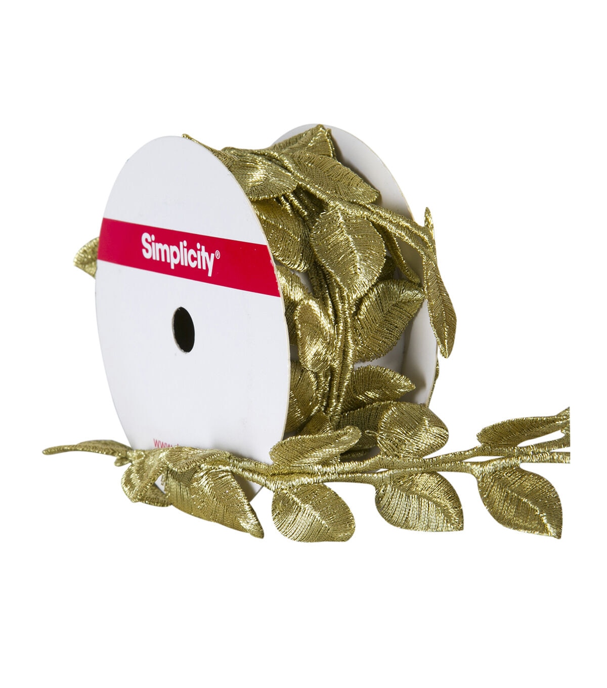 Take your crafting skills to a new level with the Simplicity Twin Leaf Trim-Gold. This beautiful trim will lend the perfect finishing touch to your DIY pillow and cushion covers, lampshades, totes and more.