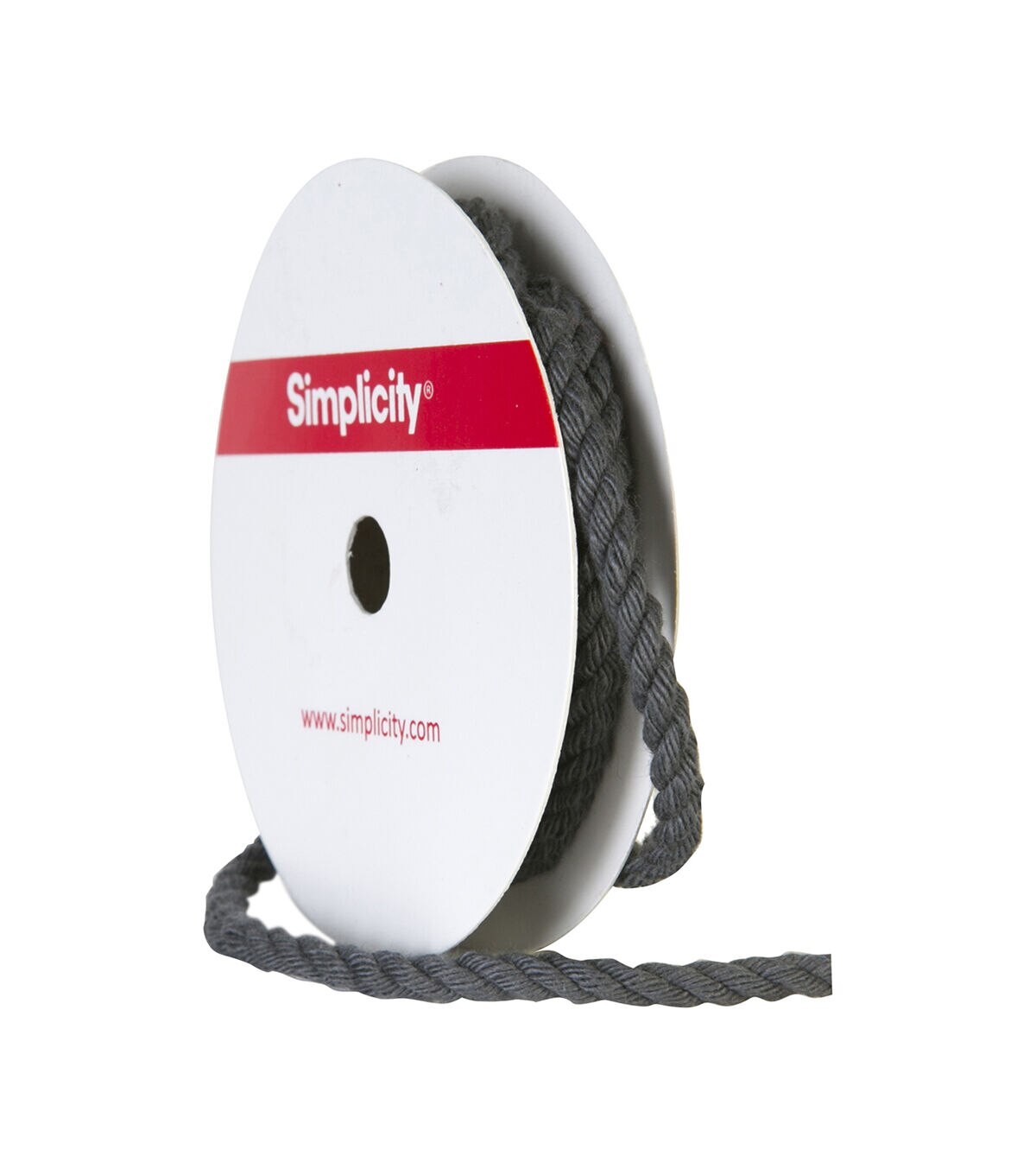 Decorating your fabric creations will be fun with the Simplicity Twisted Cord Cotton Trim-Gray. You can use it to embellish your handmade totes, wallets, apparel, lampshades, pillows and more.