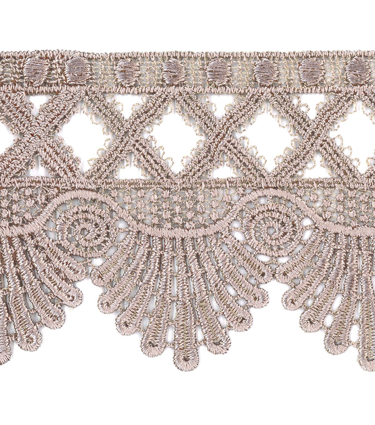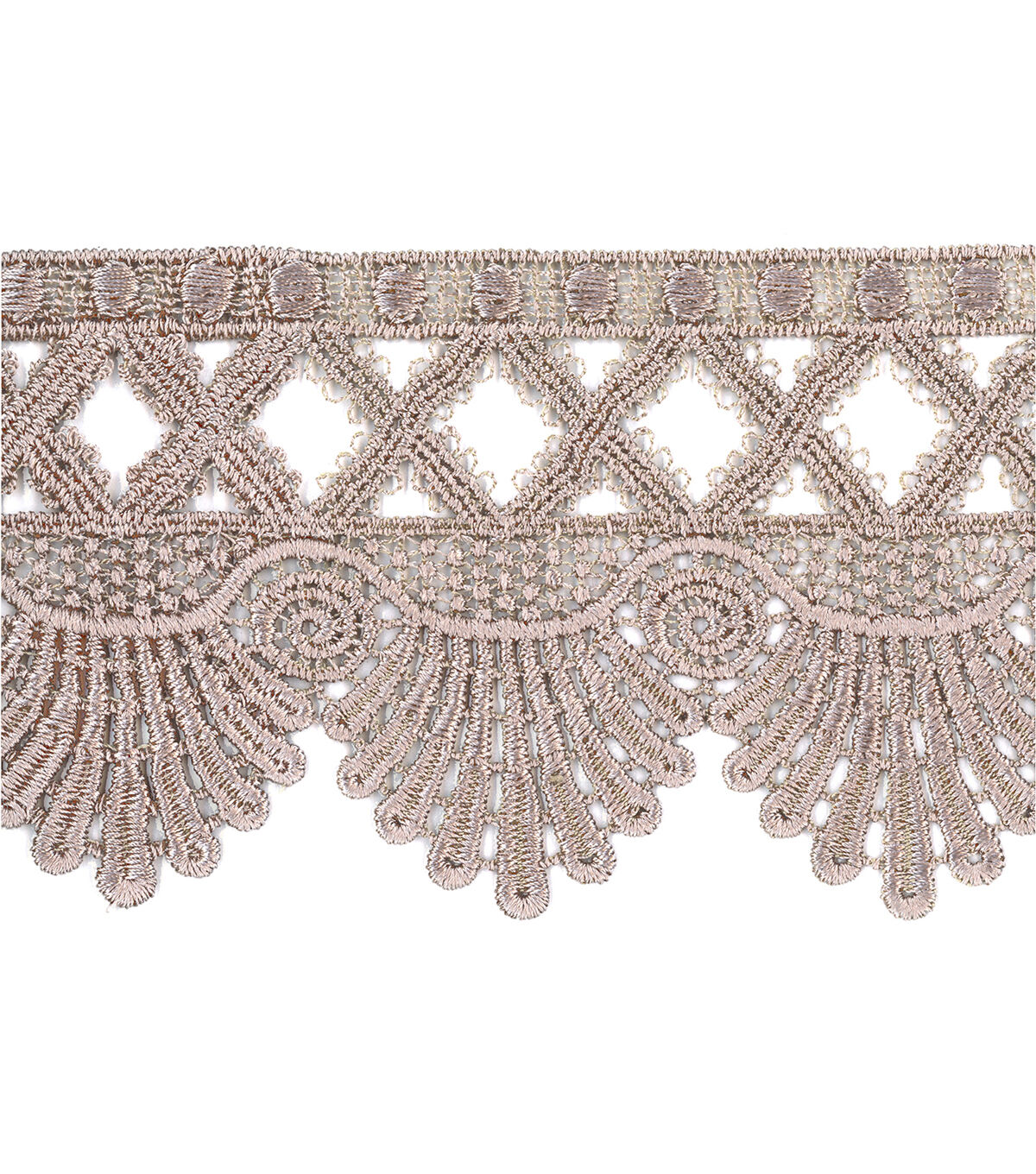 Decorating your fabric creations will be fun with the Simplicity Venice Trim-Taupe. You can use it to embellish your handmade totes, wallets, apparel, lampshades, cushion pillows and more.