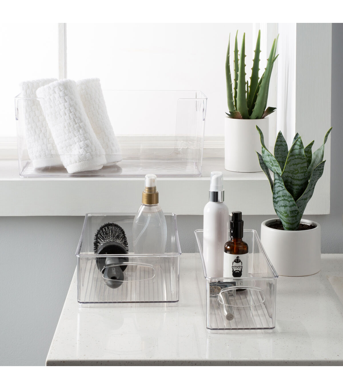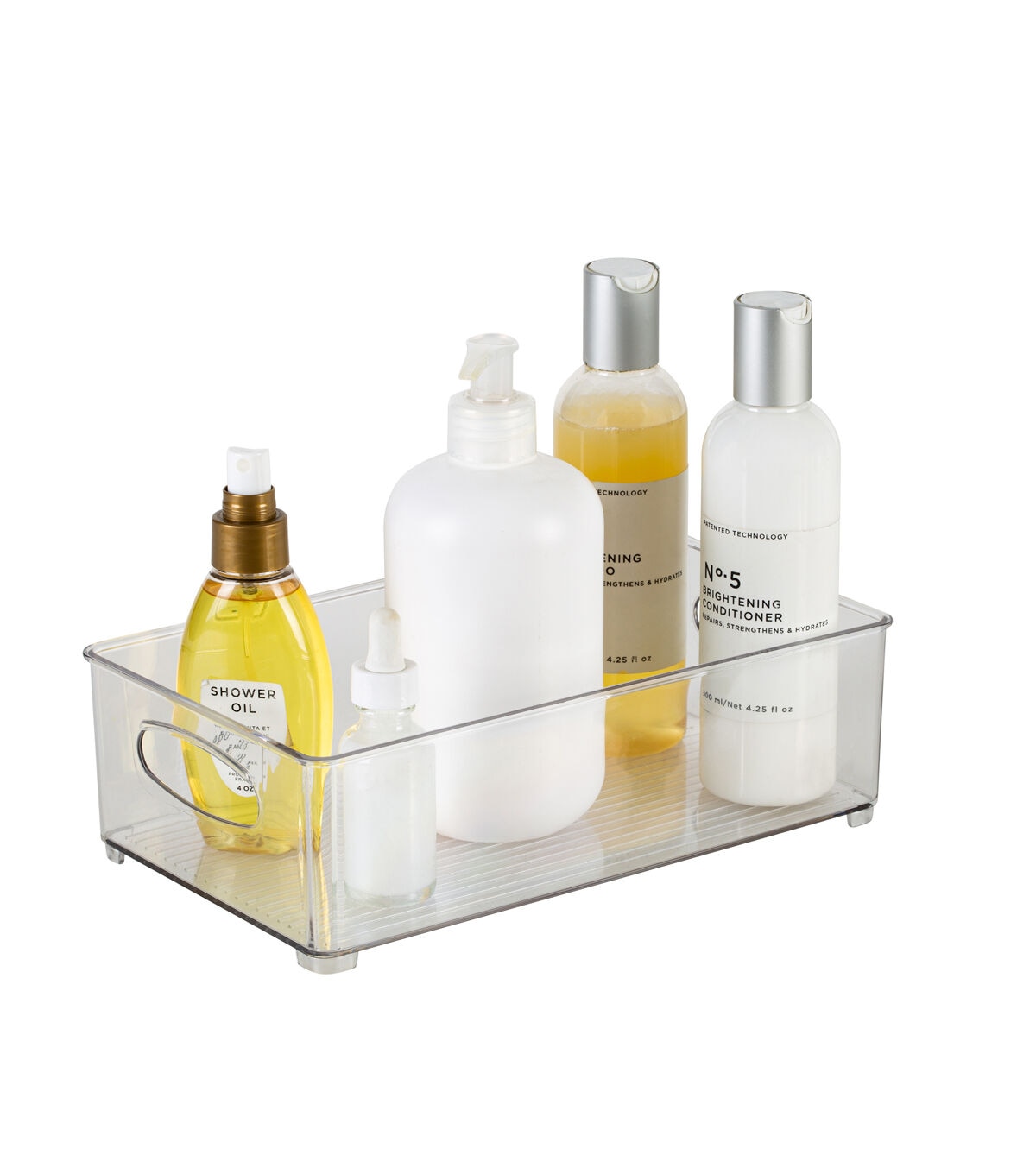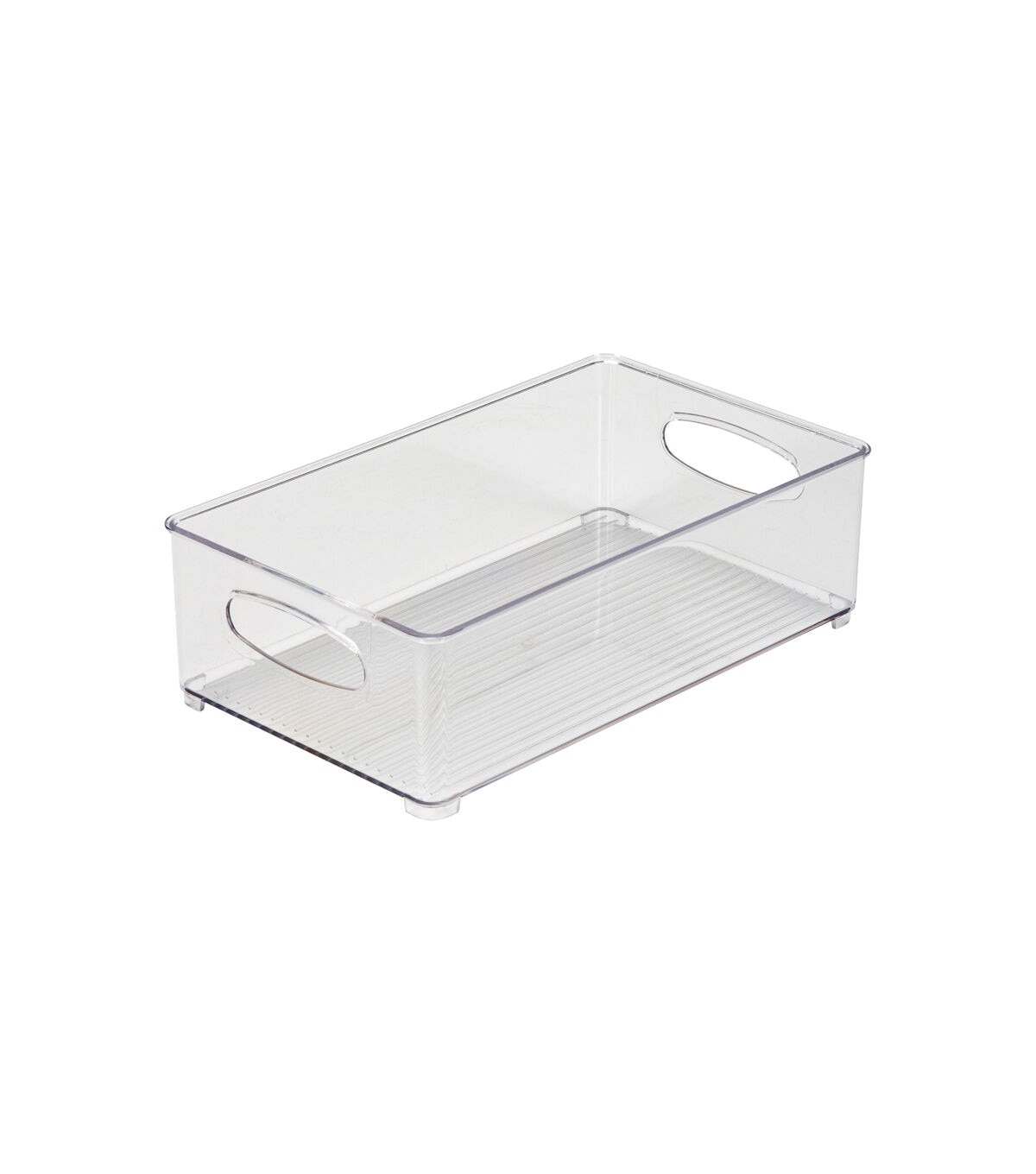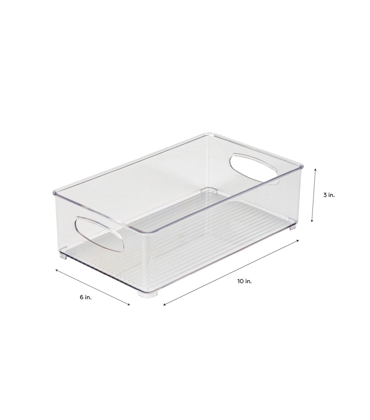 The Simplify Medium Vertical Organizer is the best kitchen storage and organization solution. This bin is perfect for cabinet and refrigerator organization. You can store canned foods in it without worrying about them falling over when you open your cabinet or drawer. Or you can store fruits, vegetables, and yogurts. in your fridge. The handle cut outs make it easy to lift and slide the bin. The clear design makes items inside visible and easy to find. You can also keep it in your office to store office supplies. The perfect storage solution for any room.