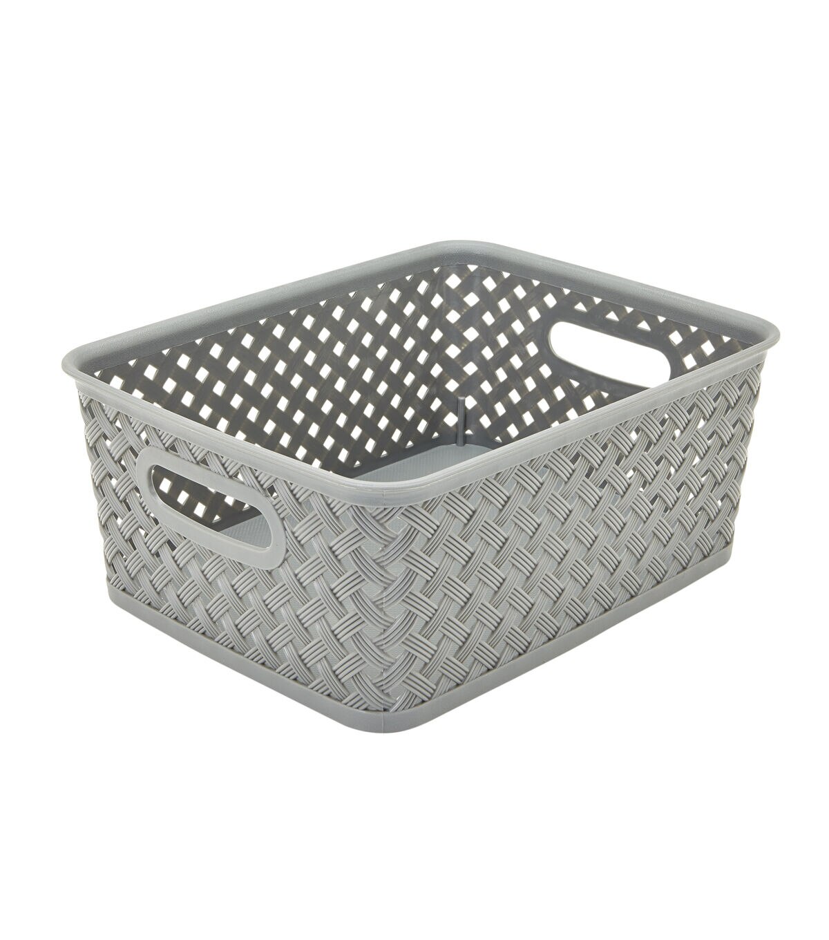 Simplify's Resin Wicker Storage Bin has a unique wicker design and is made of sturdy polypropylene plastic. 2 sturdy open handles makes it easy to carry Bin around from one place to another. It has a lightweight design and holds a multitude of items, organizing and de-cluttering homes. Wide selection of colors to fit any setting.