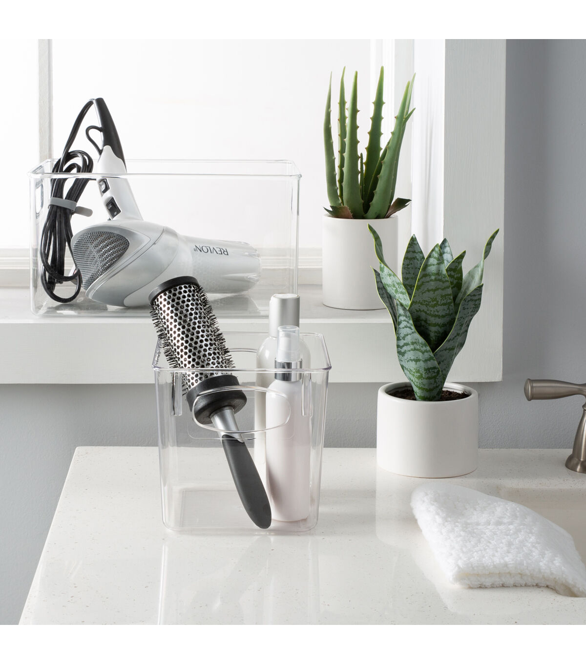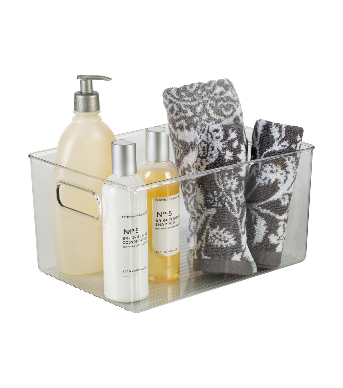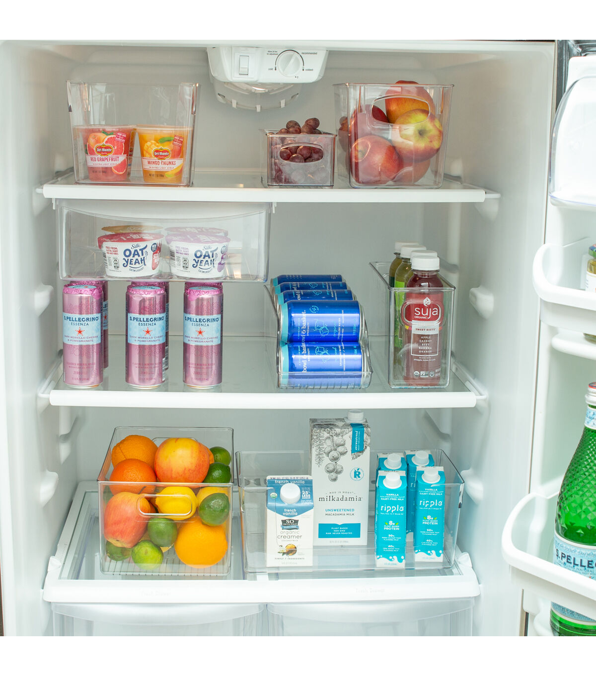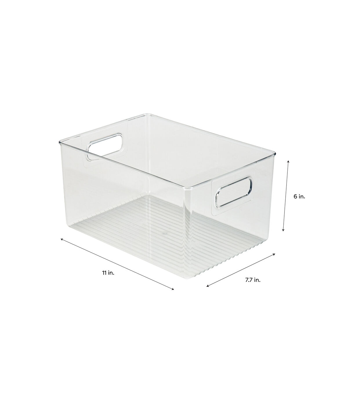 The Simplify Large Vertical Organizer is the best kitchen storage and organization solution. This bin is perfect for cabinet and refrigerator organization. You can store canned foods and boxes in it without worrying about them falling over when you open your cabinet or drawer. Or you can store fruits, vegetables, and yogurts. in your fridge. The handle cut outs make it easy to lift and slide the bin. The clear design makes items inside visible and easy to find. You can also keep it in your office to store office supplies or in the bathroom to hold shampoos and soaps. The perfect storage solution for any room.
