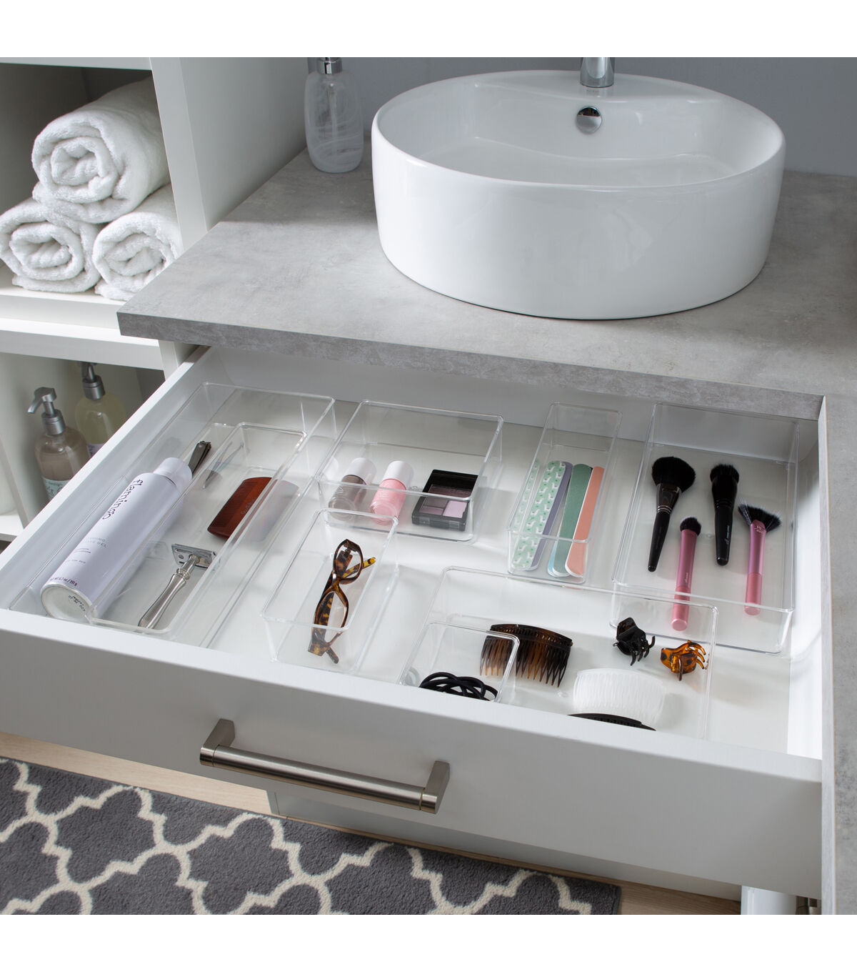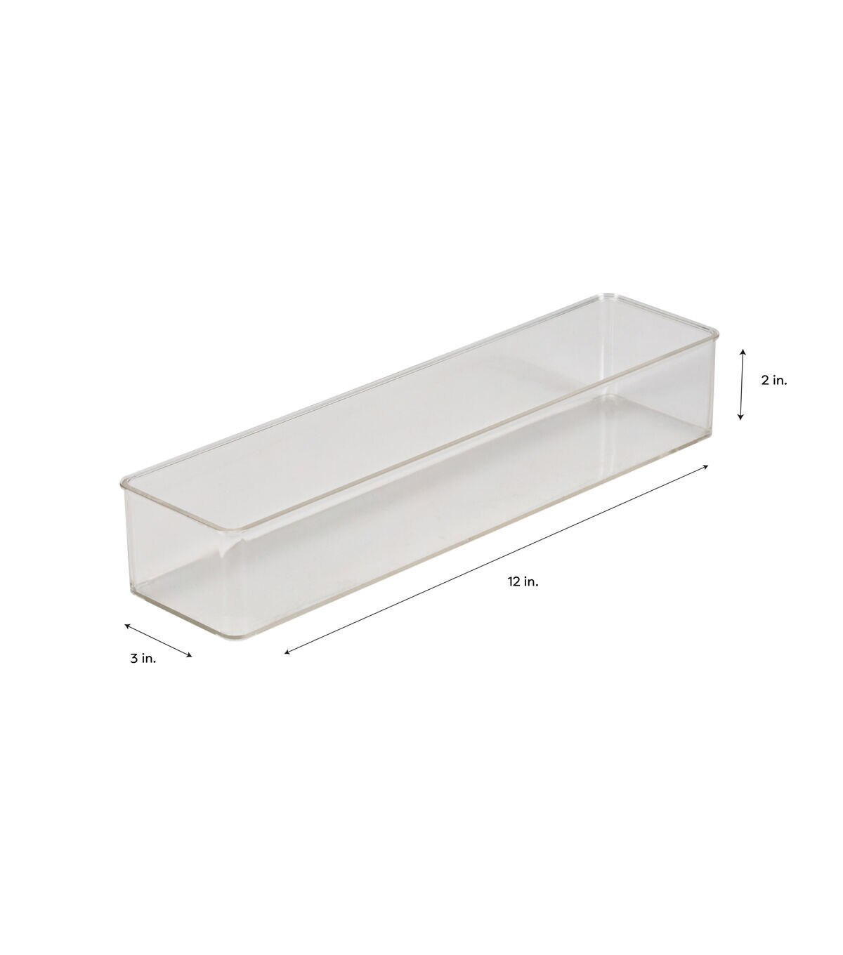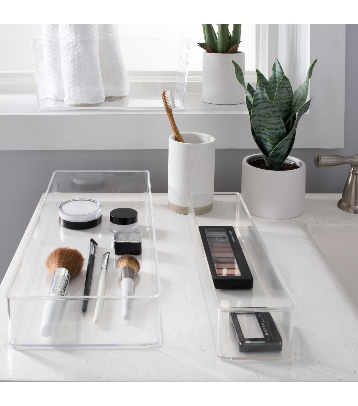Organize your bathroom vanity or desk drawer with this Simplify Long Narrow Drawer Organizer. It is the perfect size for desk accessories such as pens, pencils, and markers. It is also good for holding jewelry and cosmetics and brushes. The clear design makes items inside visible and easy to find. You can keep this transparent organizer bin on your desktop or countertop surface because it fits with any room’s décor. Organize the little things in life with the Simplify Drawer Organizer.