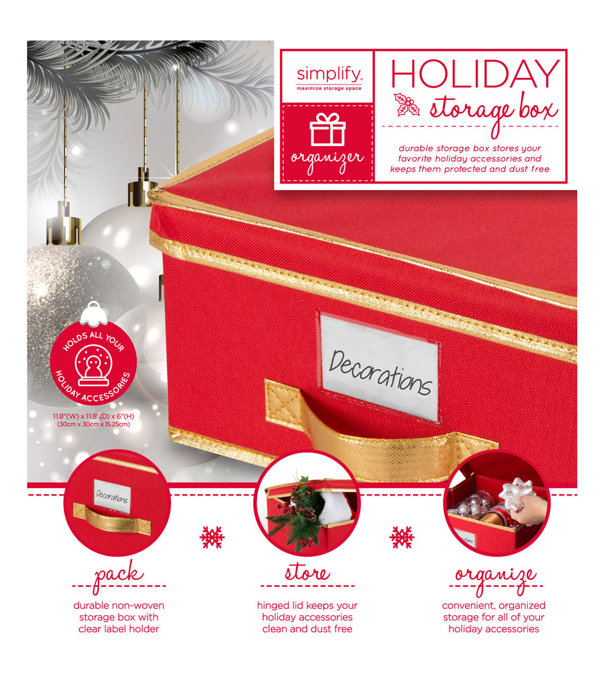 - Hinged Lid Keeps Holiday Accessories Clean & Dust Free