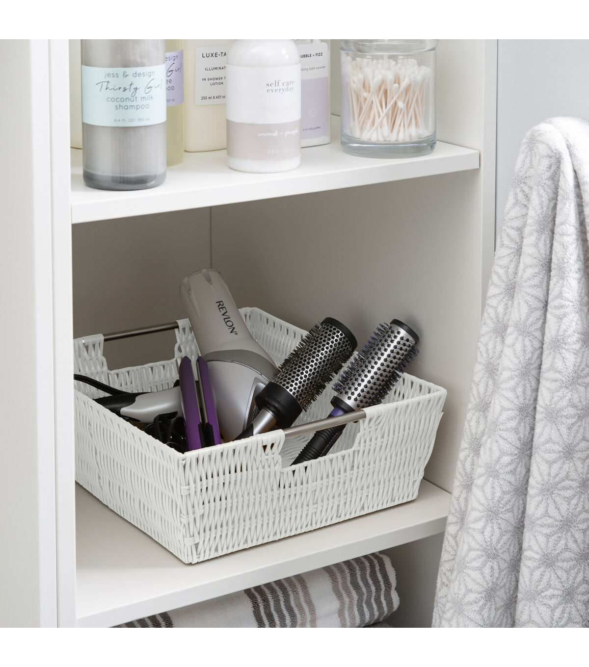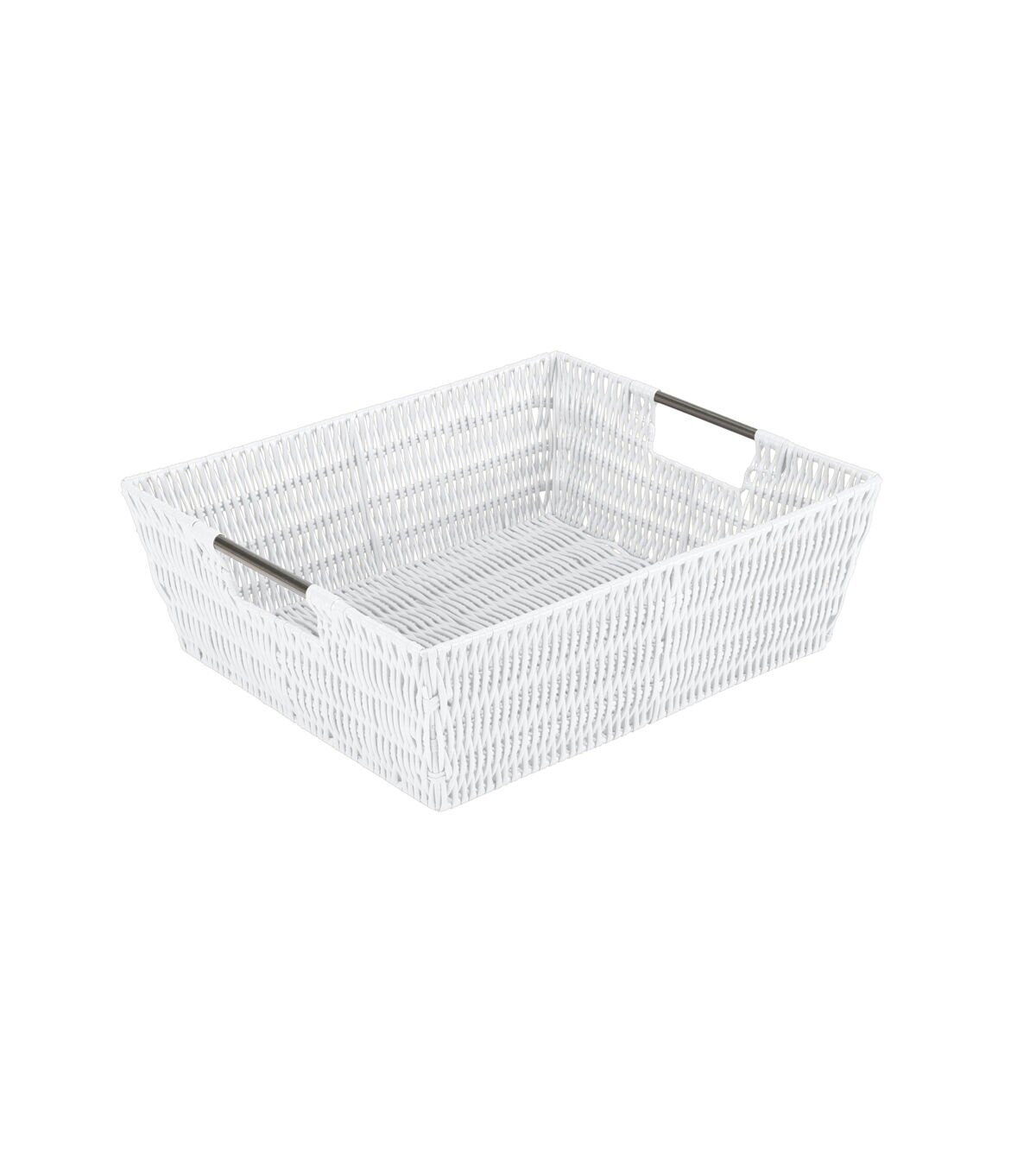 Organize and create storage in your home with the Simplify Rattan Tote Basket Collection. Simplify's Rattan Tote is a PE Basket with an iron frame and 2 sturdy stainless steel carry handles. It is strong and durable prolonging it's life, and it's lightweight design makes it easy to lift and carry. Fits any home decor with it's wide selection of colors. Store your household belongings and organize space with these stylish baskets. Stack them together in a corner of your craft area, home office or Dorm to keep your essentials close at hand in an organized manner.